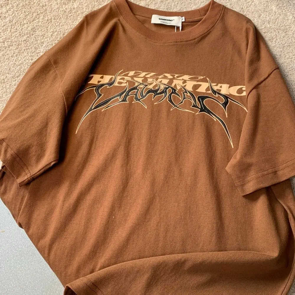 Aidase American Retro Letter Printed Round Neck Graphic T-shirt for Men and Women Summer Casual Couple Trend Short Sleeved Top Harajuku