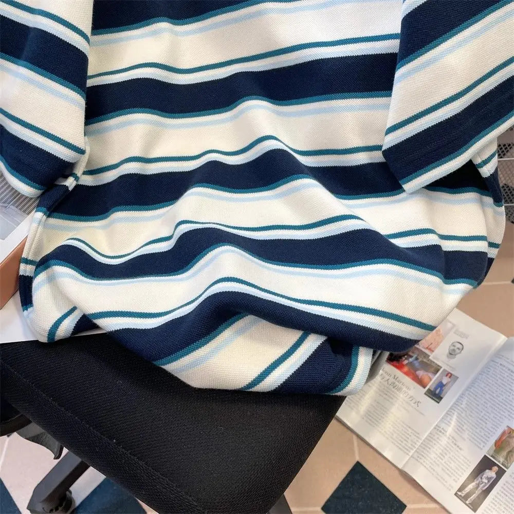 Aidase Hip Hop Street Men and Women Trendy Personality Stripe Round Neck Short Sleeve Couple Summer Loose Casual T-shirt Y2K harajuku