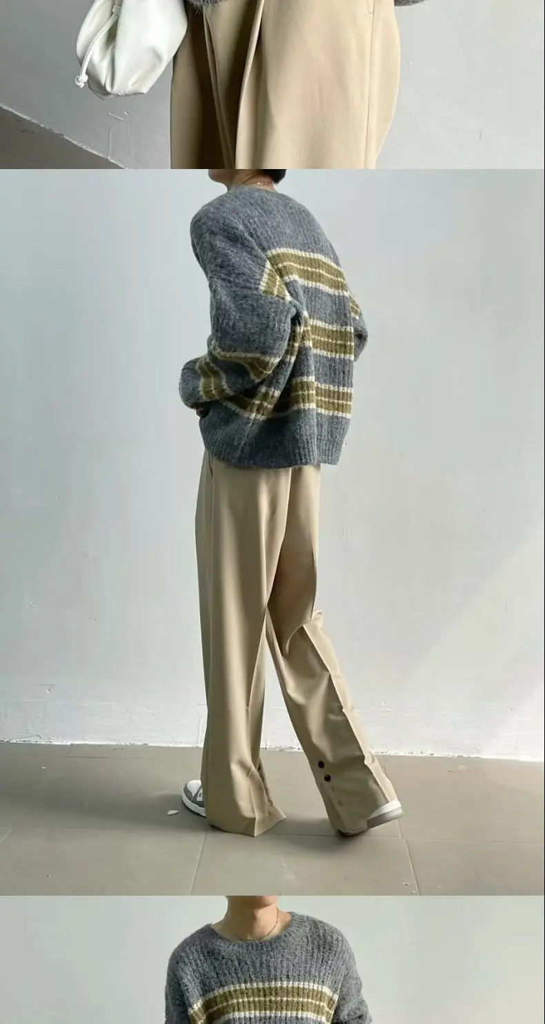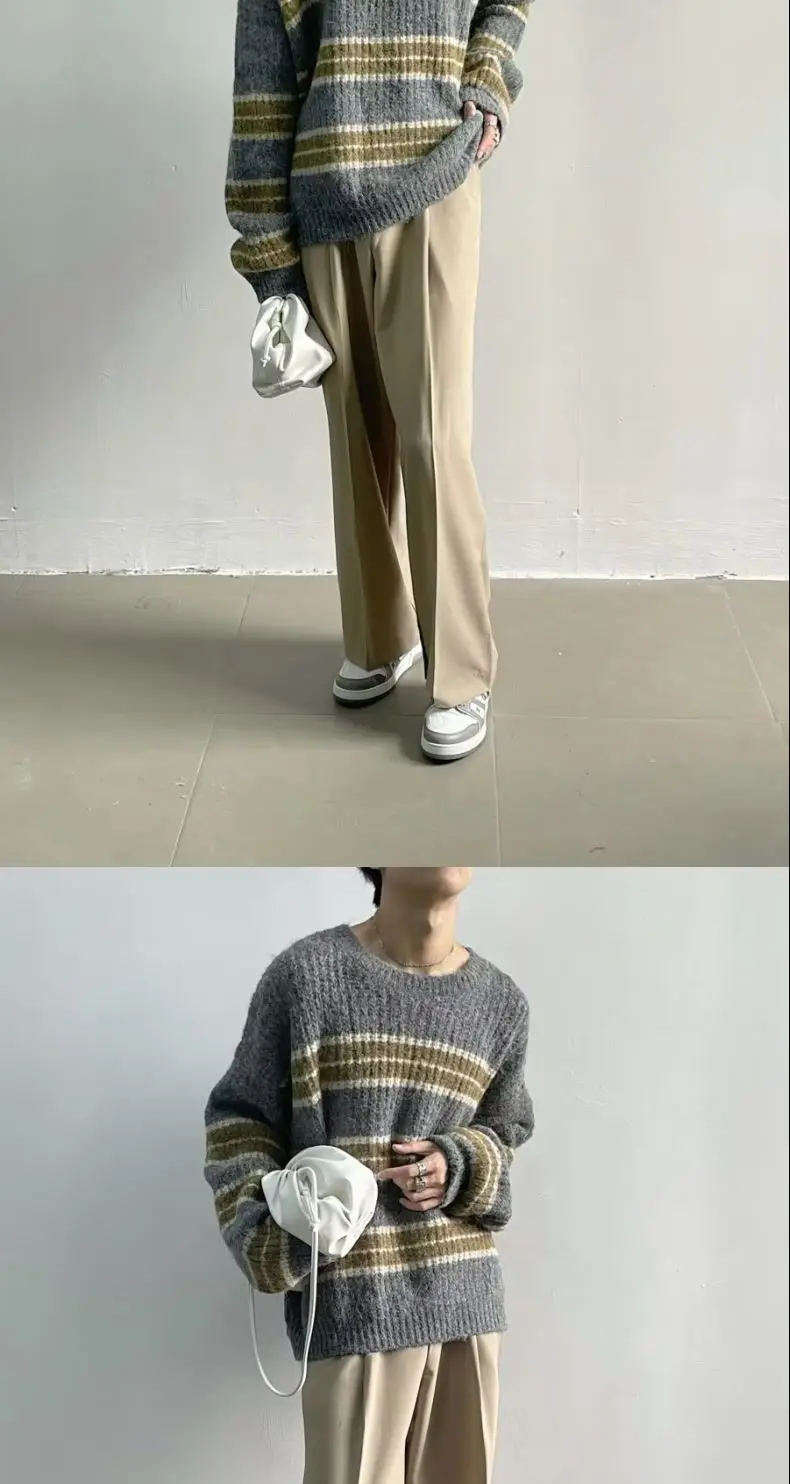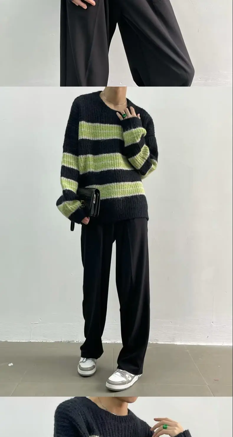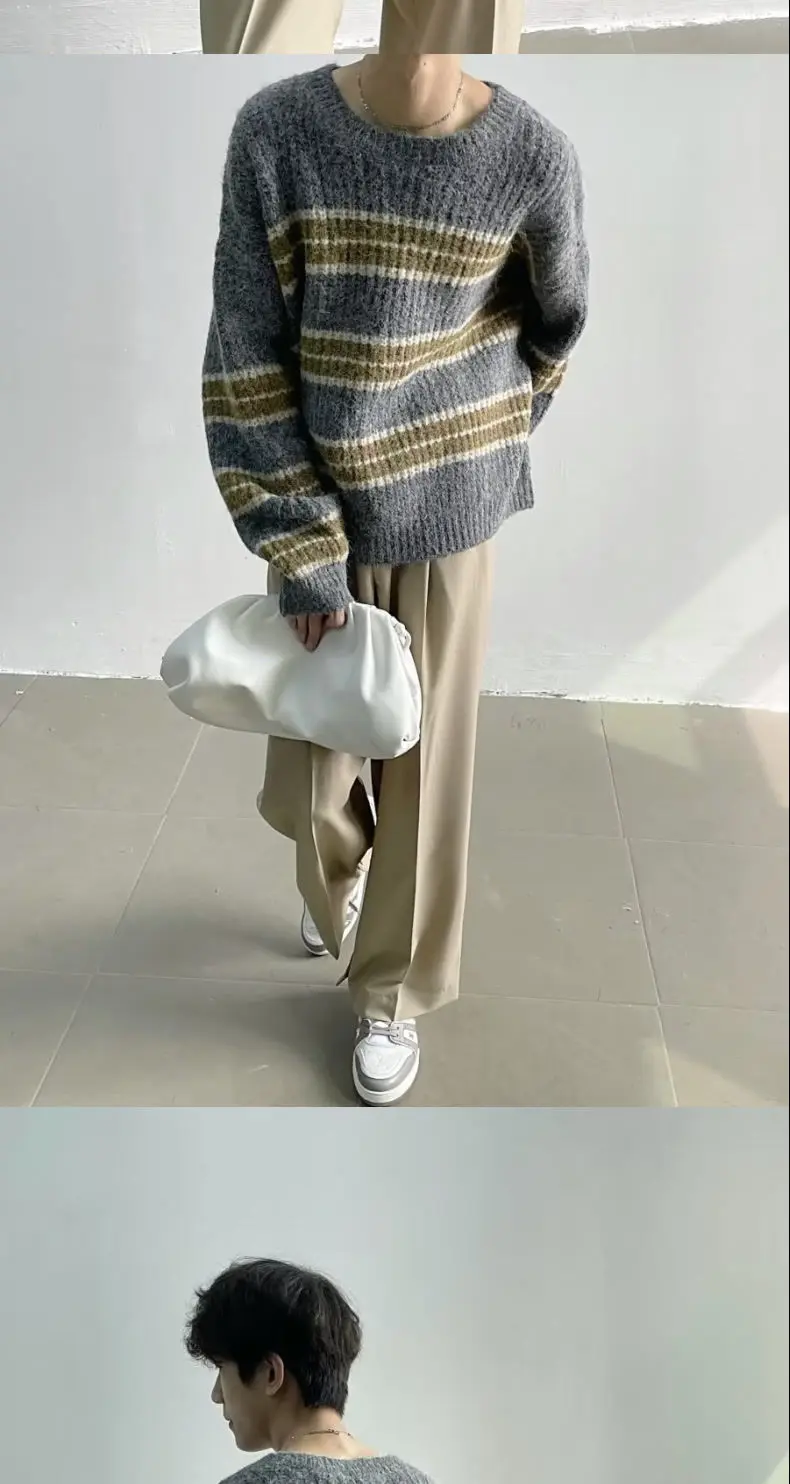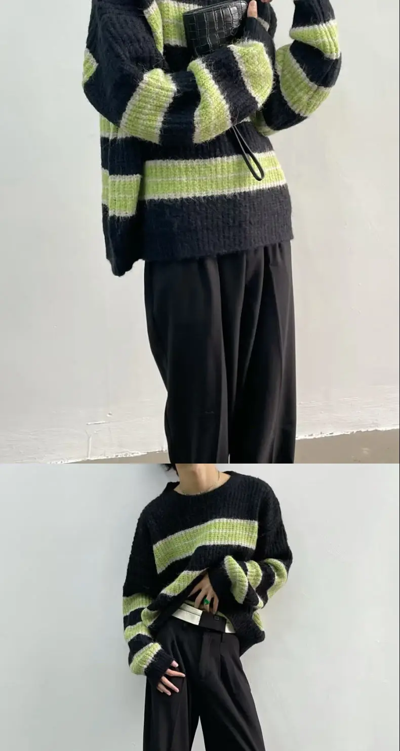 Aidase Korean Style Lazy Style Contrast Striped Sweater Men's Autumn and Winter American Loose Y2K High-end Design Street Sweater Top
