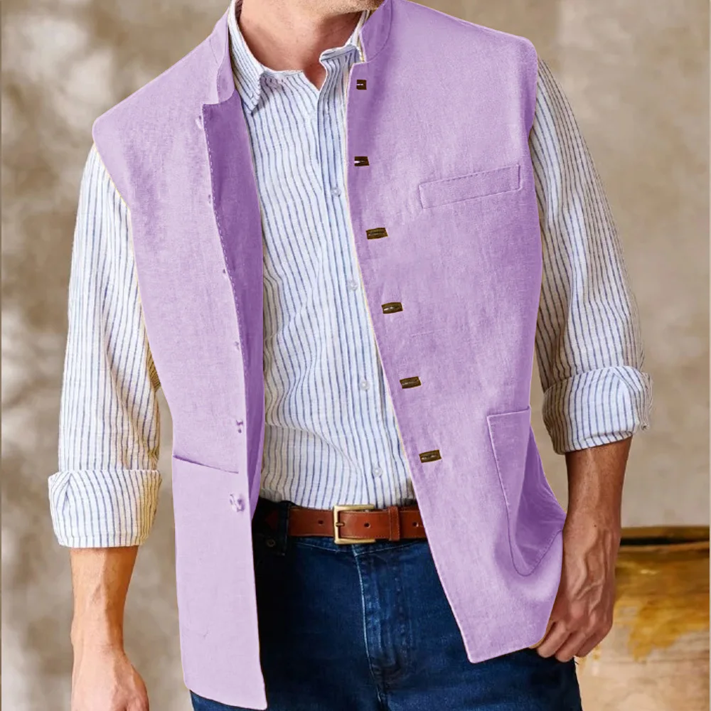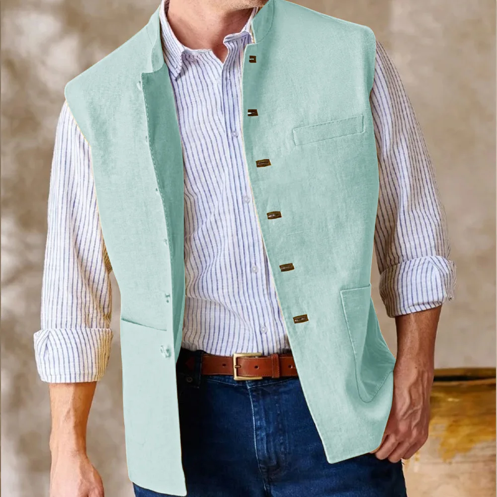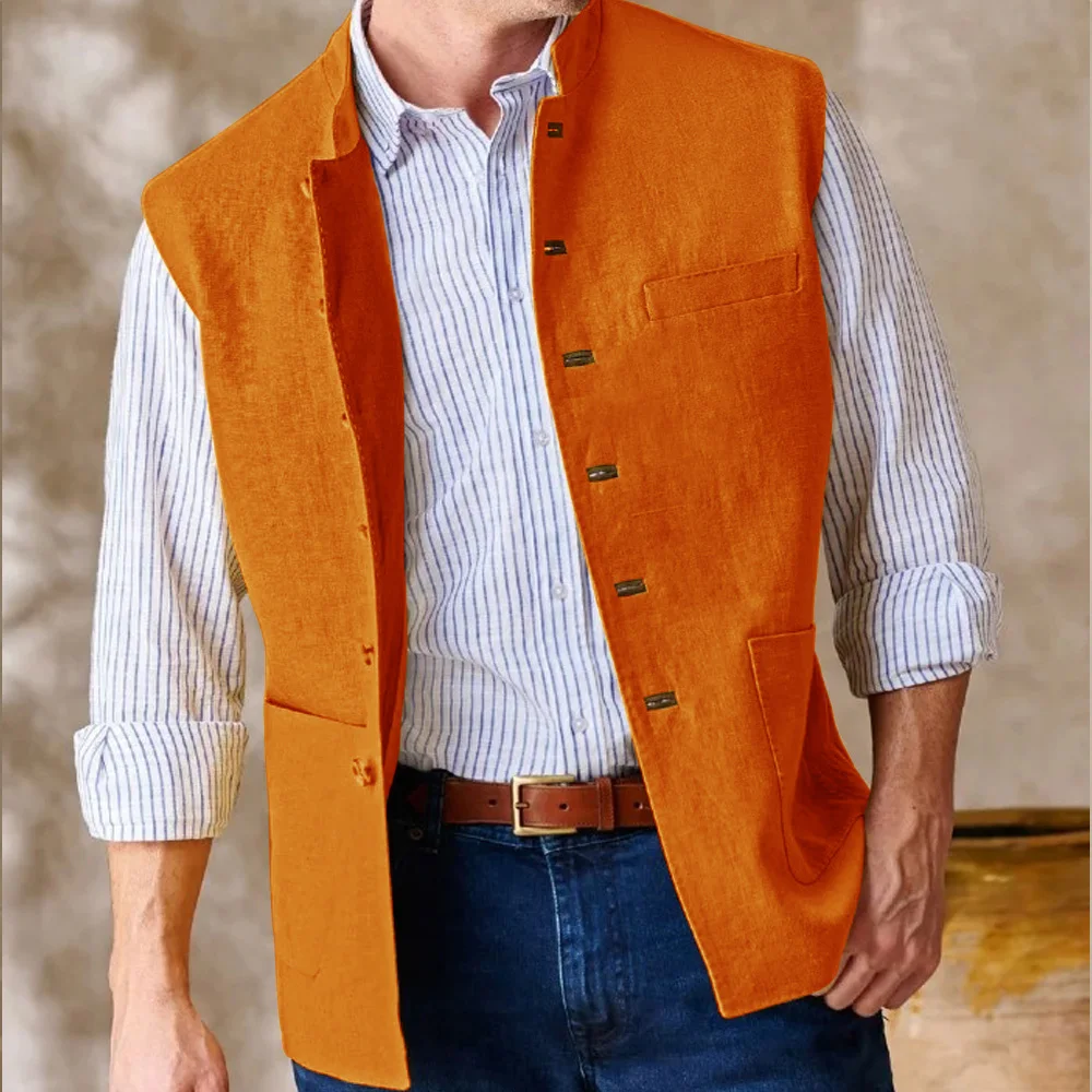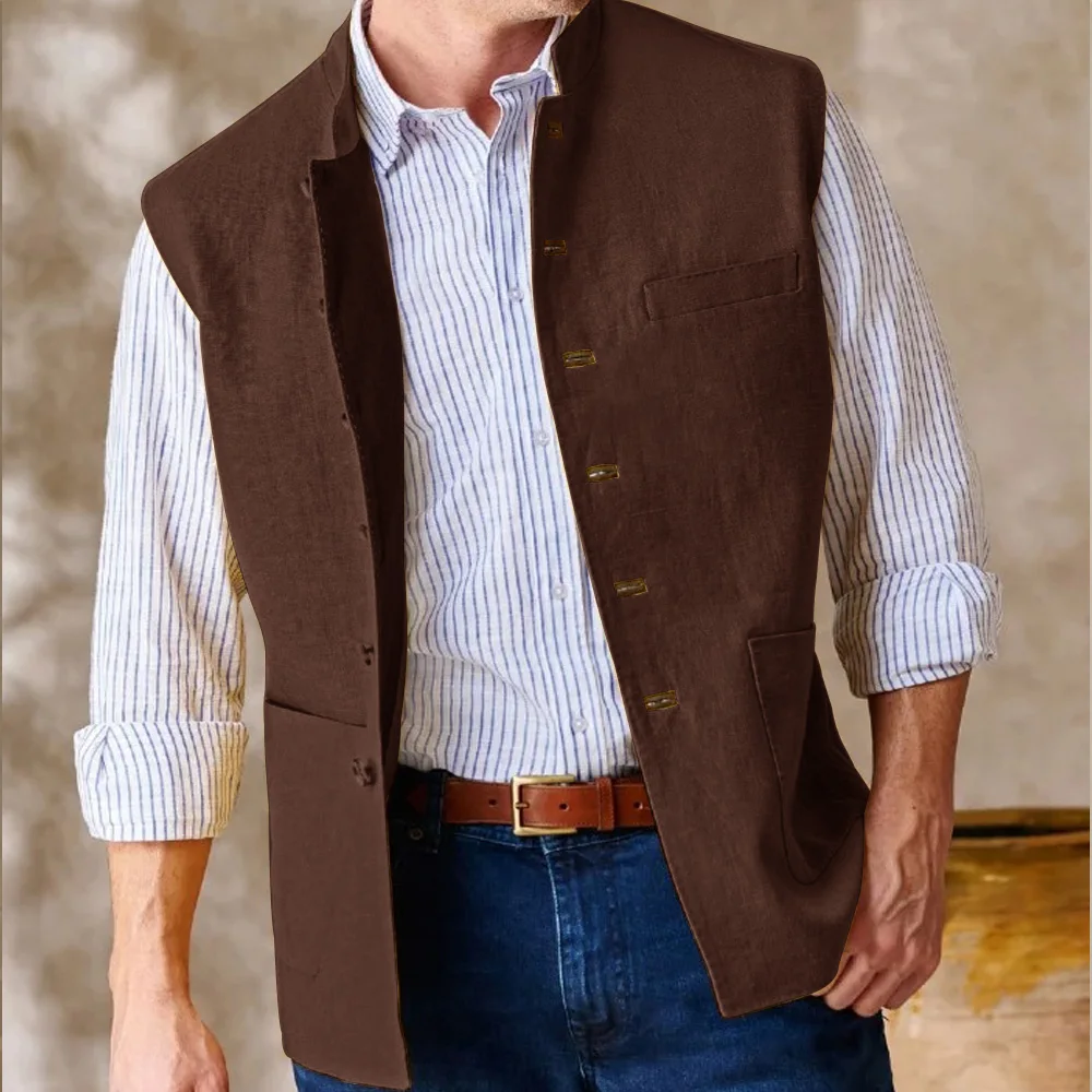 Aidase Men Vests Sleeveless Stand Up Collar Single Breasted Solid Color Lightweight Cardigan High Quality Male Outerwear chaleco