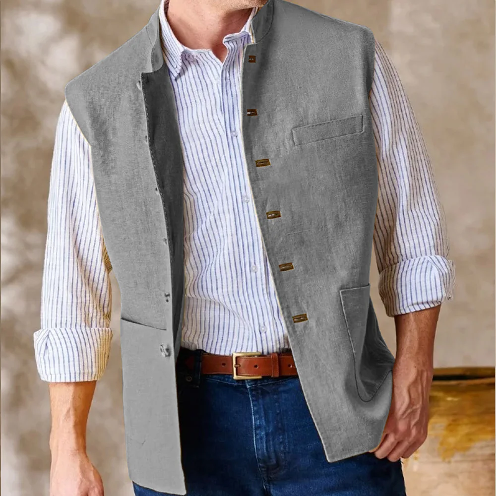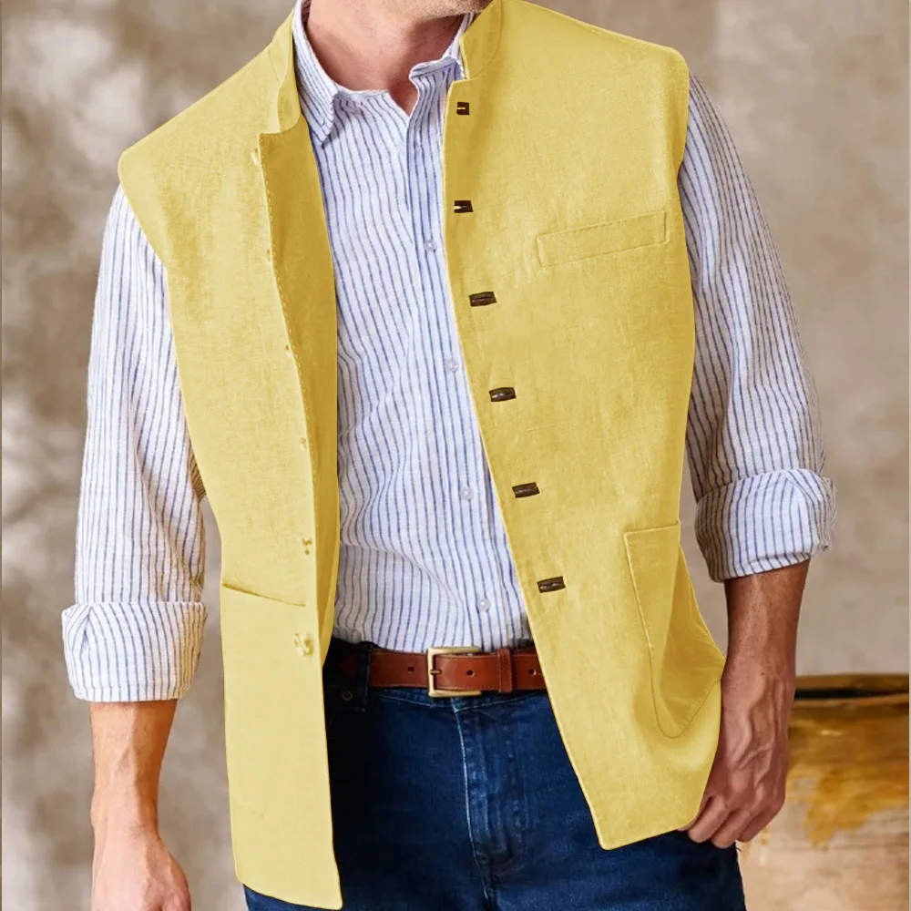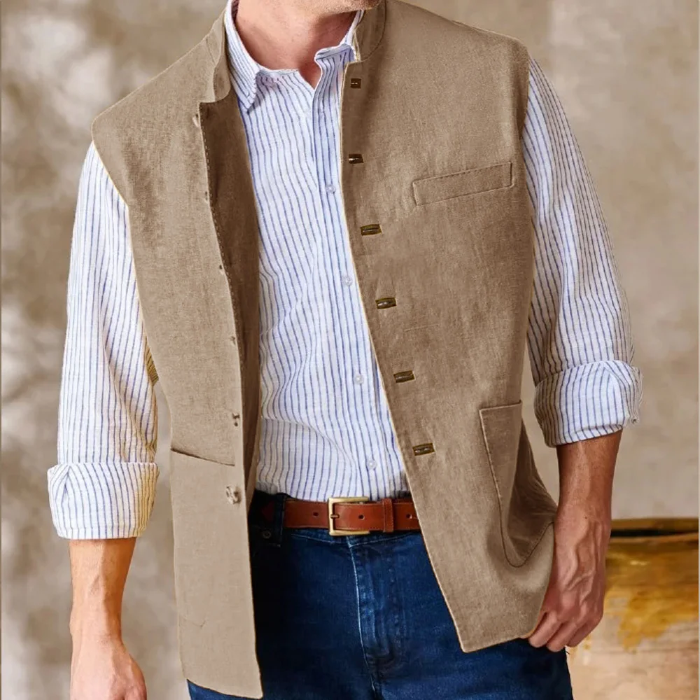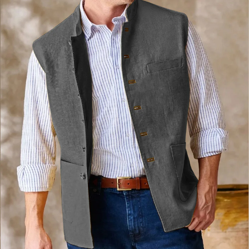 Aidase Men Vests Sleeveless Stand Up Collar Single Breasted Solid Color Lightweight Cardigan High Quality Male Outerwear chaleco