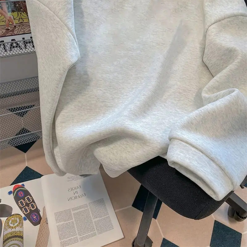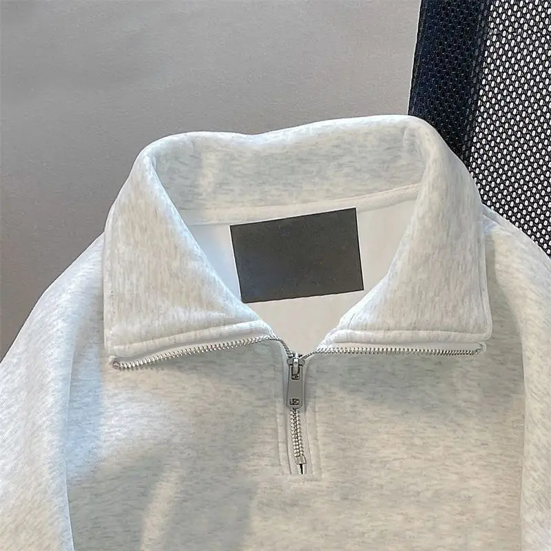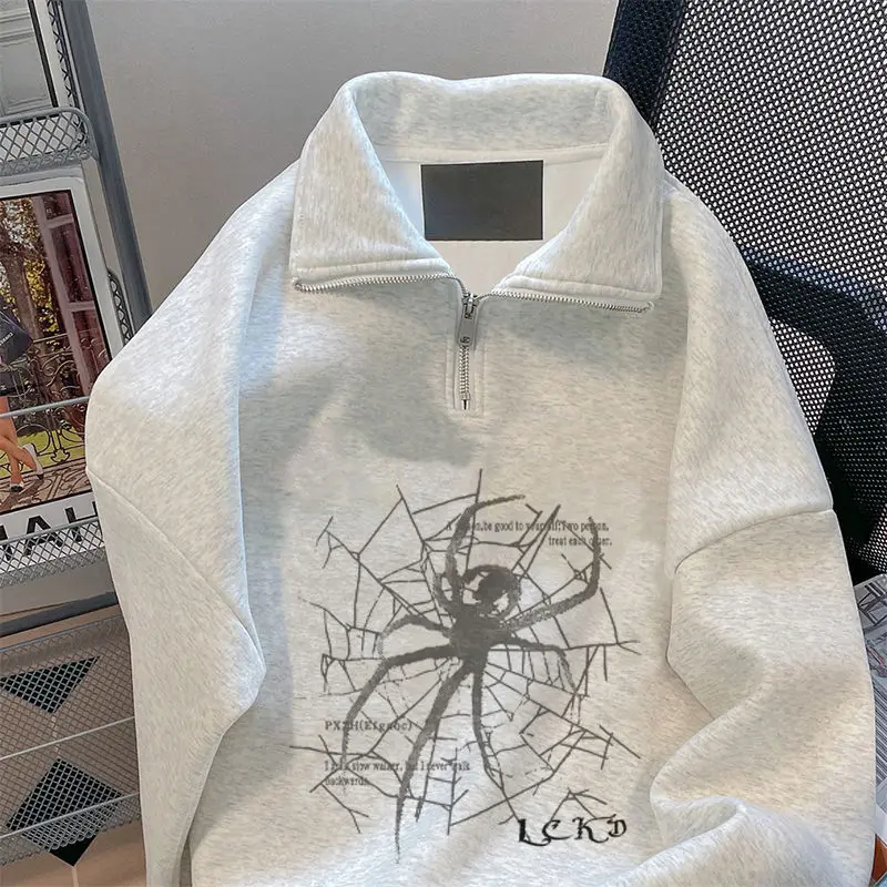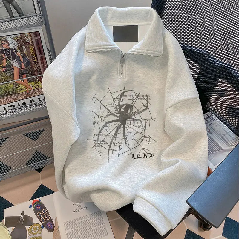 Aidase American Autumn and Winter Men and Women Trendy Personalized Spider Print Half Zip Pullover for Couples Loose Retro Casual Top