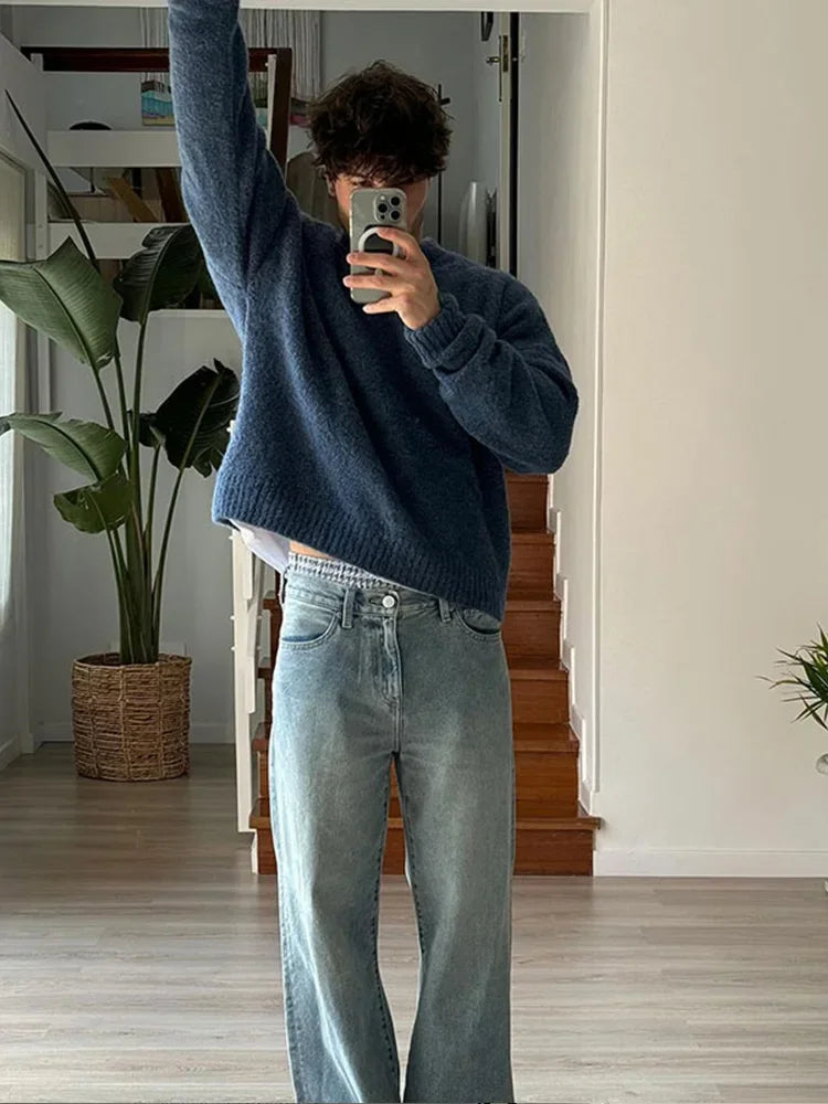Aidase Fashion Solid Fleece Turtleneck Sweater For Male Casual Loose Long Sleeve Knitted Pullover 2024 Autumn Thicken Warm Men's Jumper