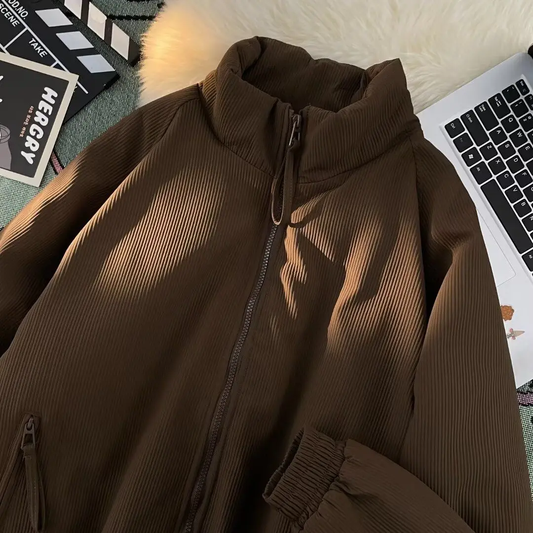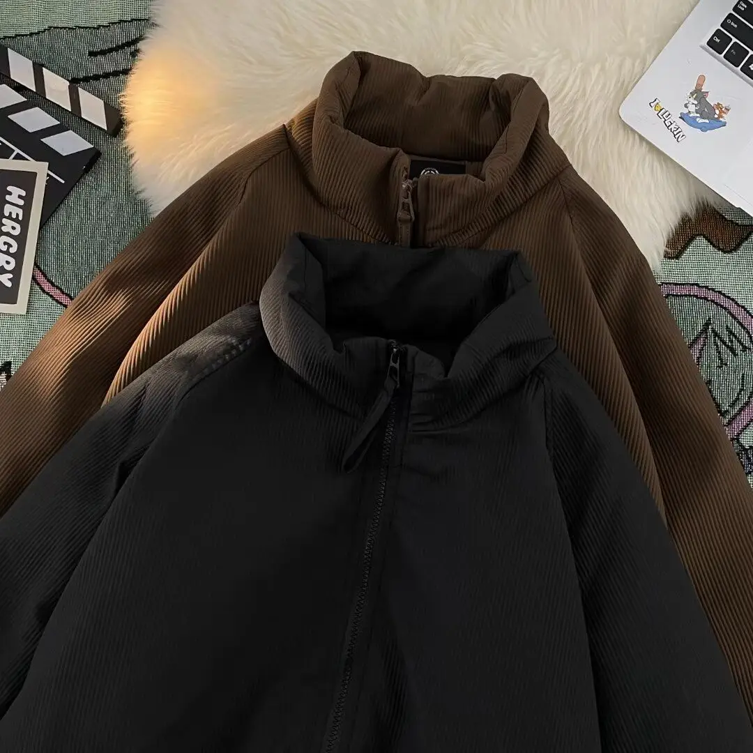 Aidase Hip Hop High Street Trend Men and Women Retro Personality Stand up Collar Cotton Coat Thick Coat Couple Winter American Casual