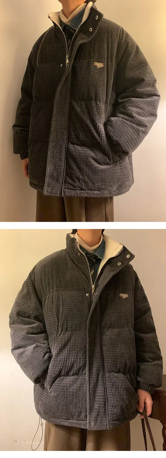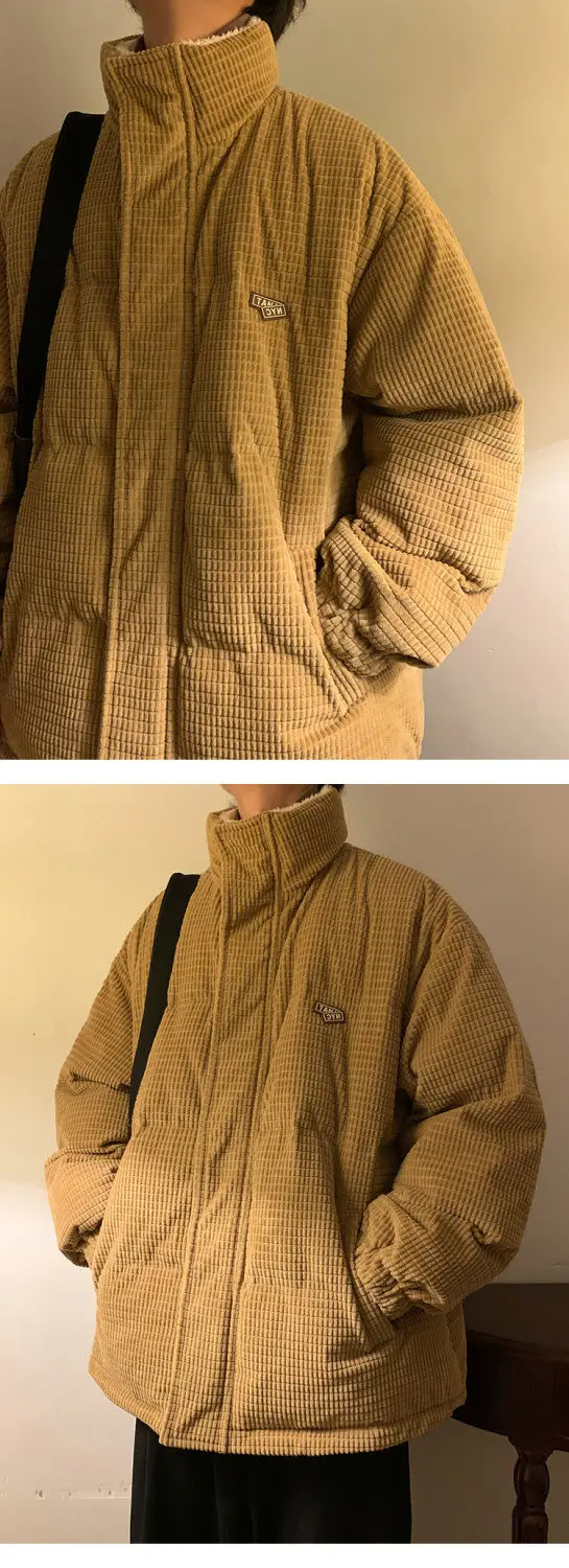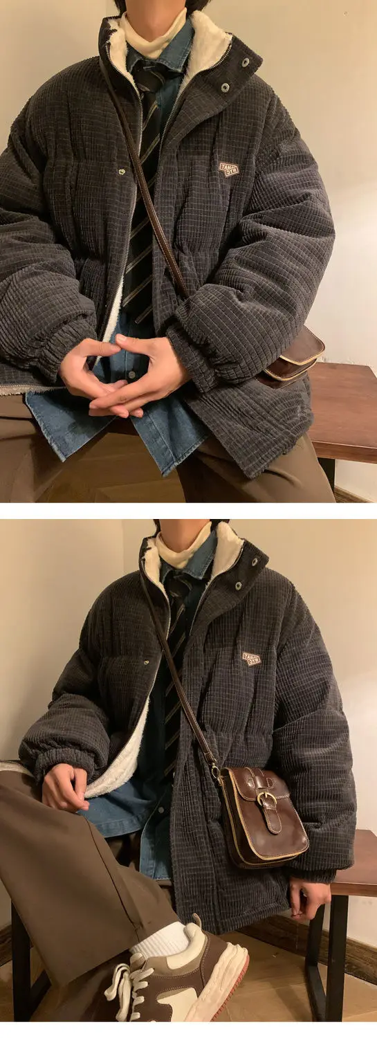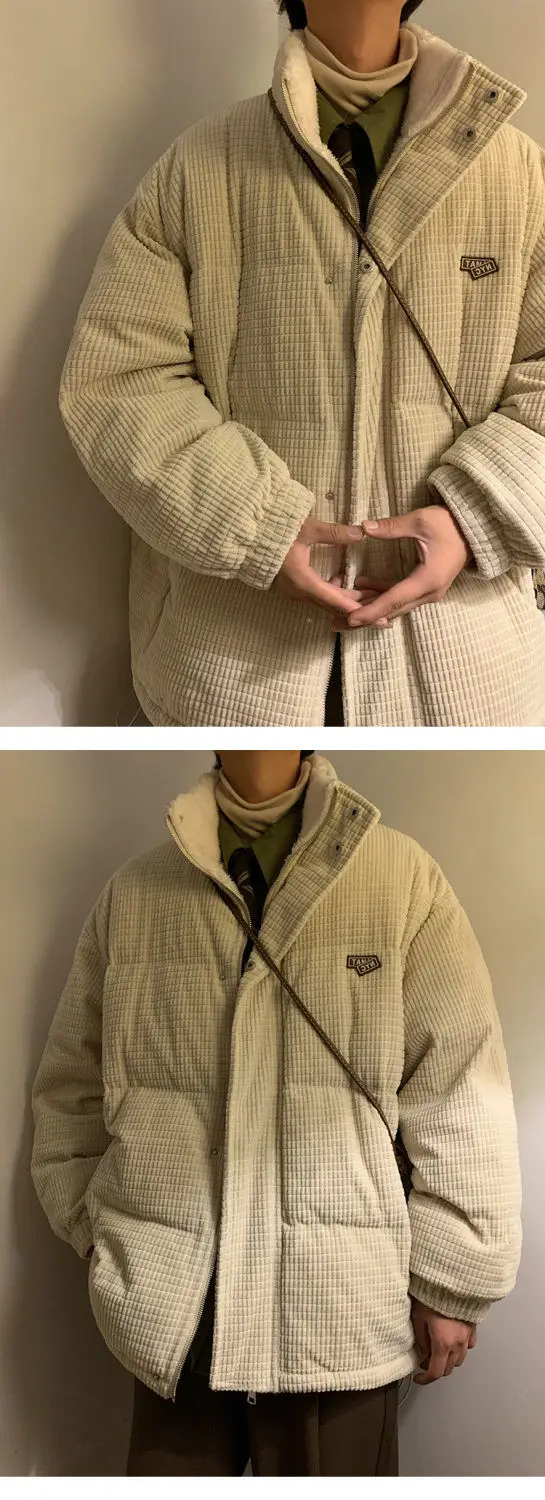 Aidase mens outfits American High Street Winter Men and Women Trendy Personality Corduroy Stand up Collar Jacket for Couples Loose Hip-hop Casual