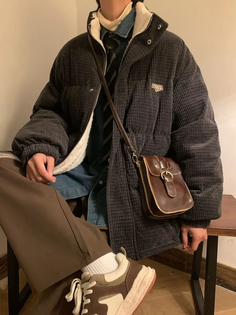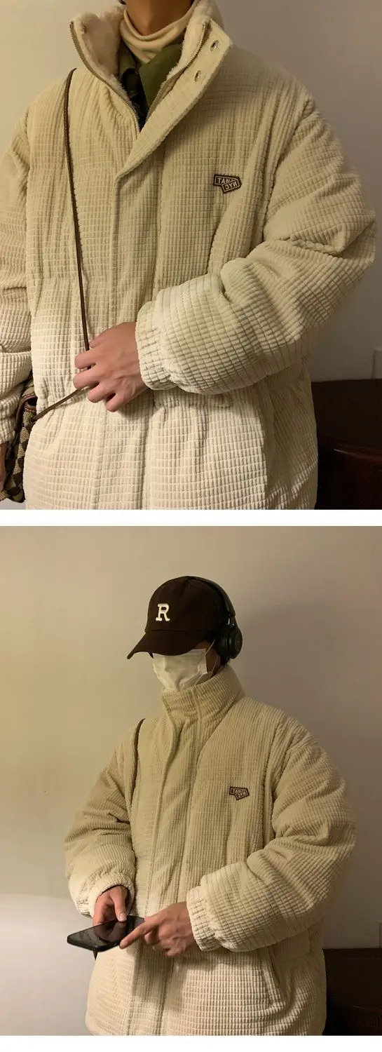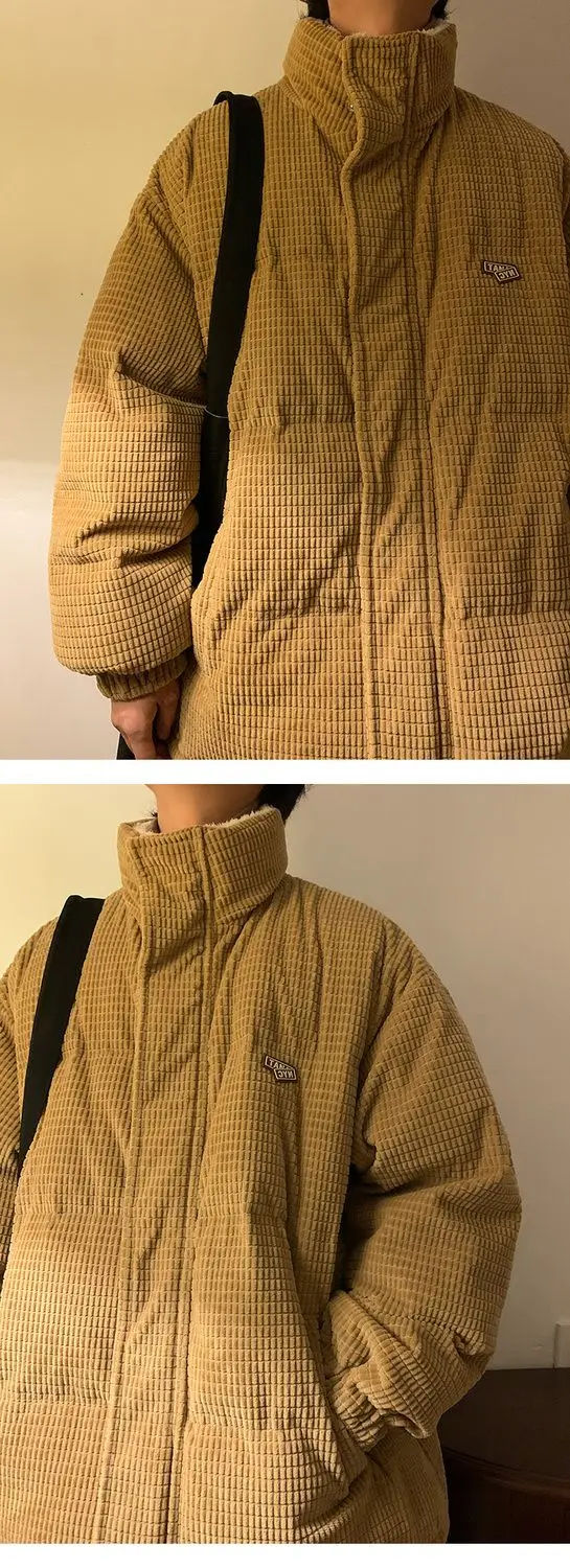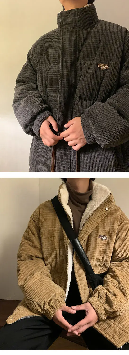 Aidase mens outfits American High Street Winter Men and Women Trendy Personality Corduroy Stand up Collar Jacket for Couples Loose Hip-hop Casual