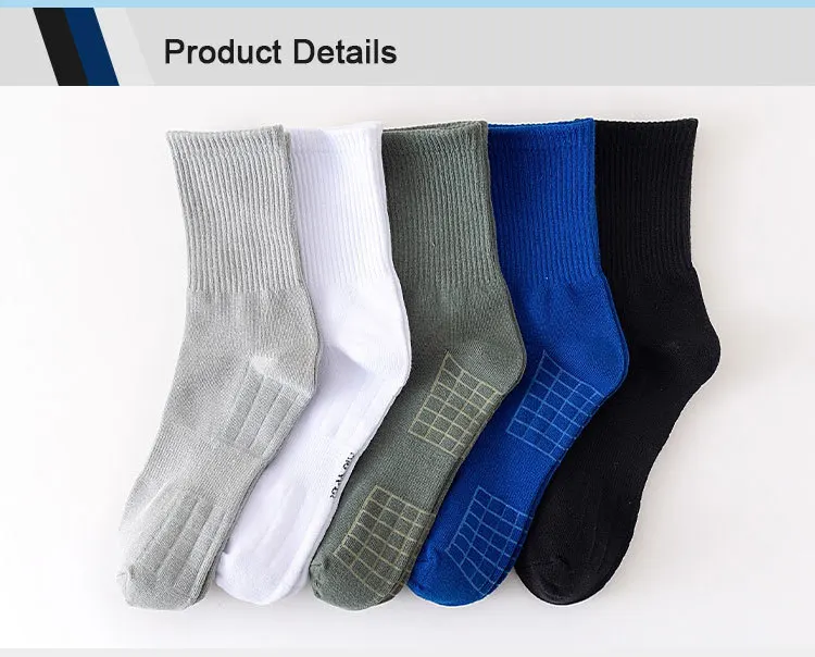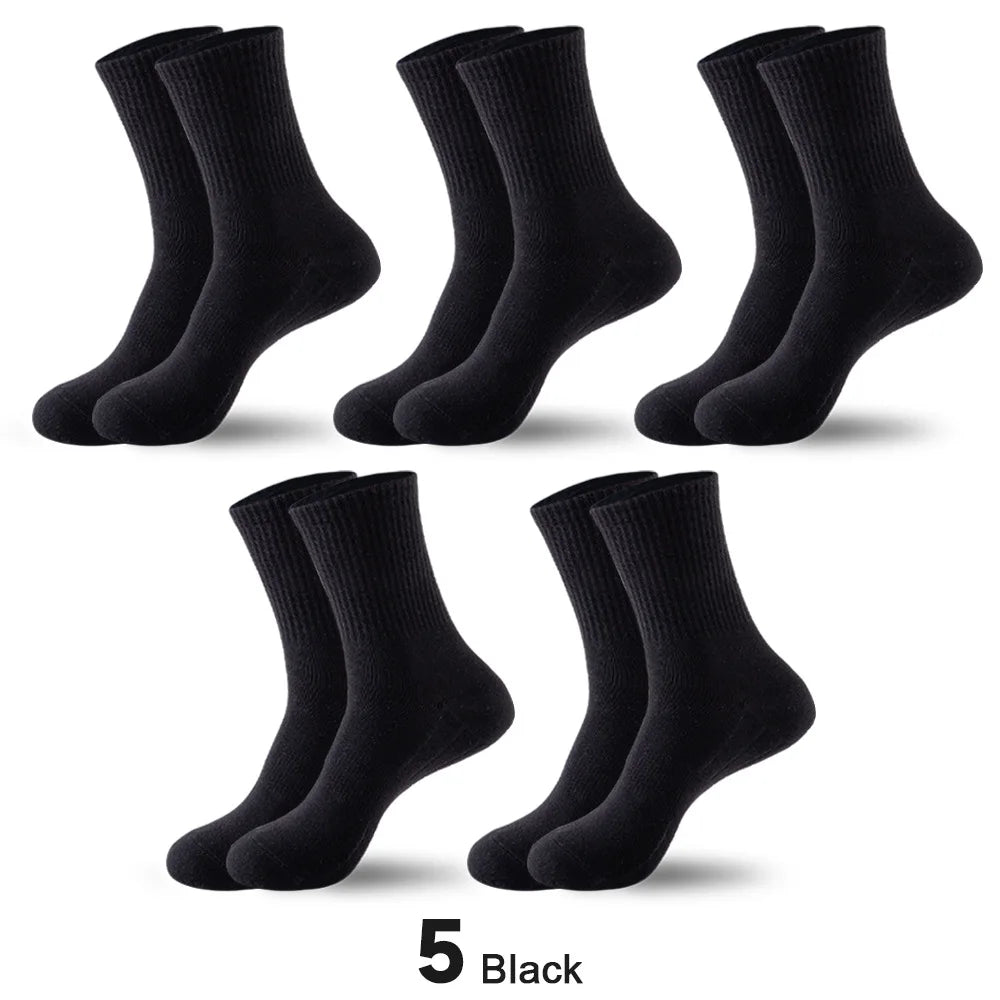 AIDASE - 5 Pairs/lot Men's Tube Socks 100% Cotton Solid Colour Sweat Anti-odour Outdoor Sports Socks Autumn Winter Black White Warm Socks
