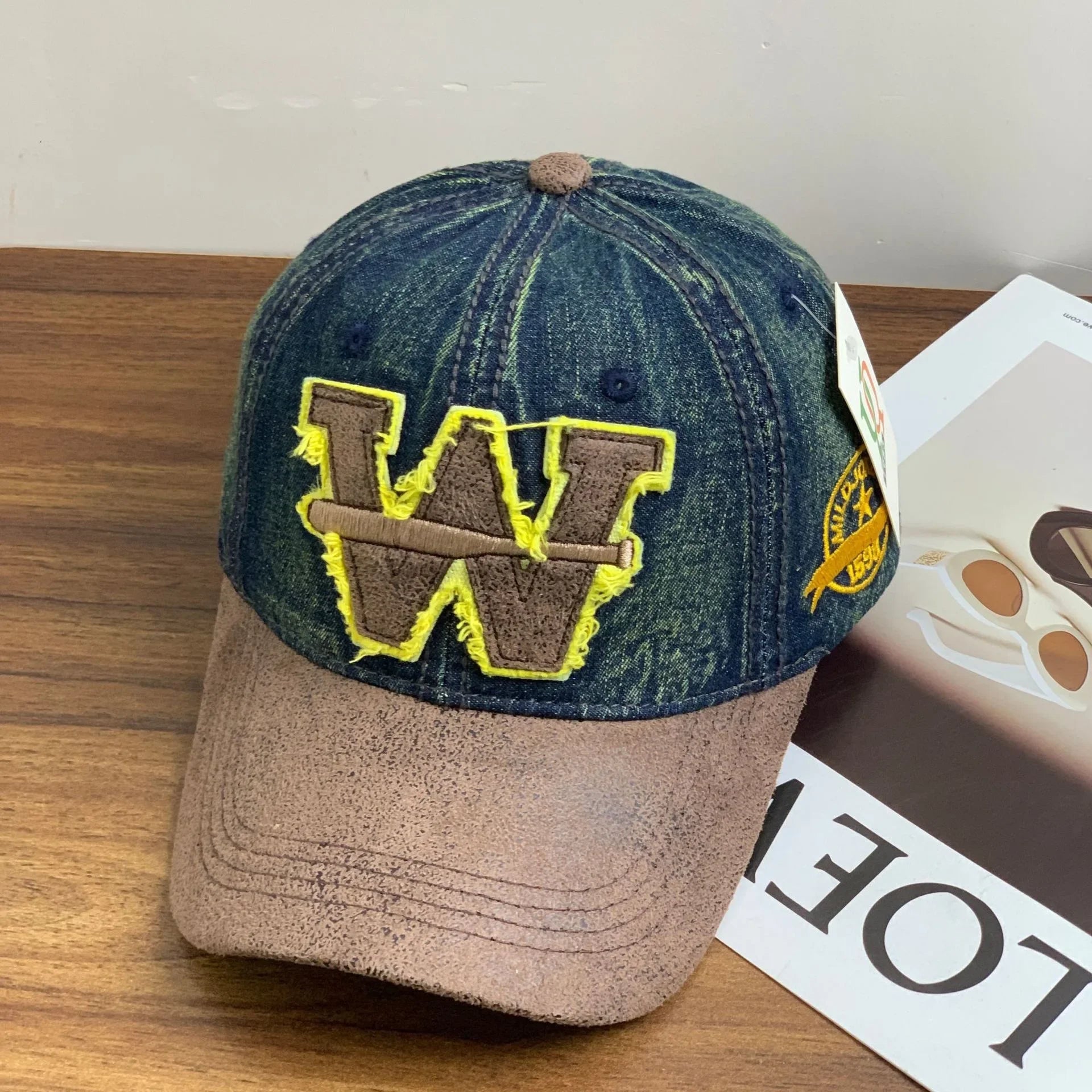 AIDASE - Alphabet patch color blocked unisex spring and autumn duckbill cap, outdoor versatile breathable soft top baseball cap