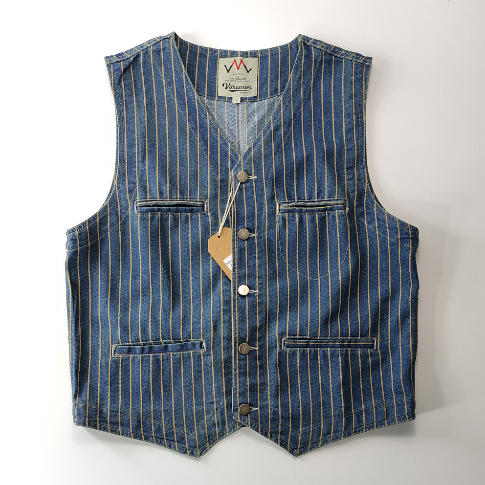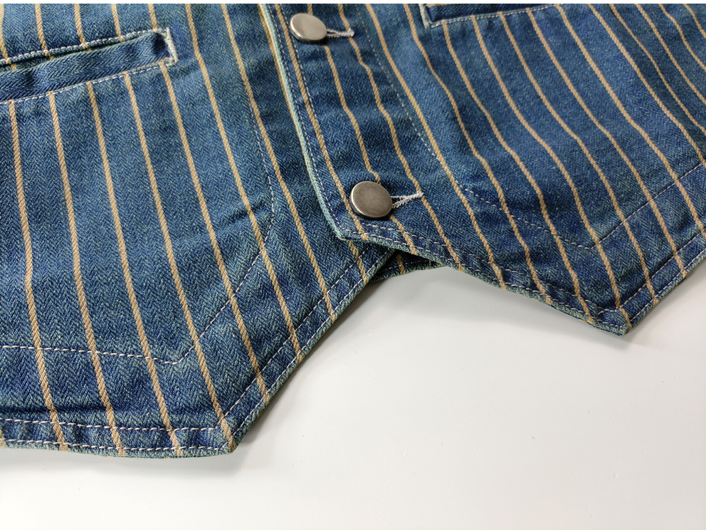 American casual retro denim blue vest washed 100% cotton vertical striped distressed buckle back gentleman camisole vintage