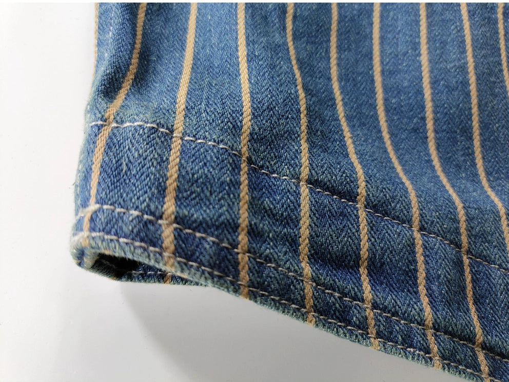 Aidase American casual retro denim blue vest washed 100% cotton vertical striped distressed buckle back gentleman camisole vintage