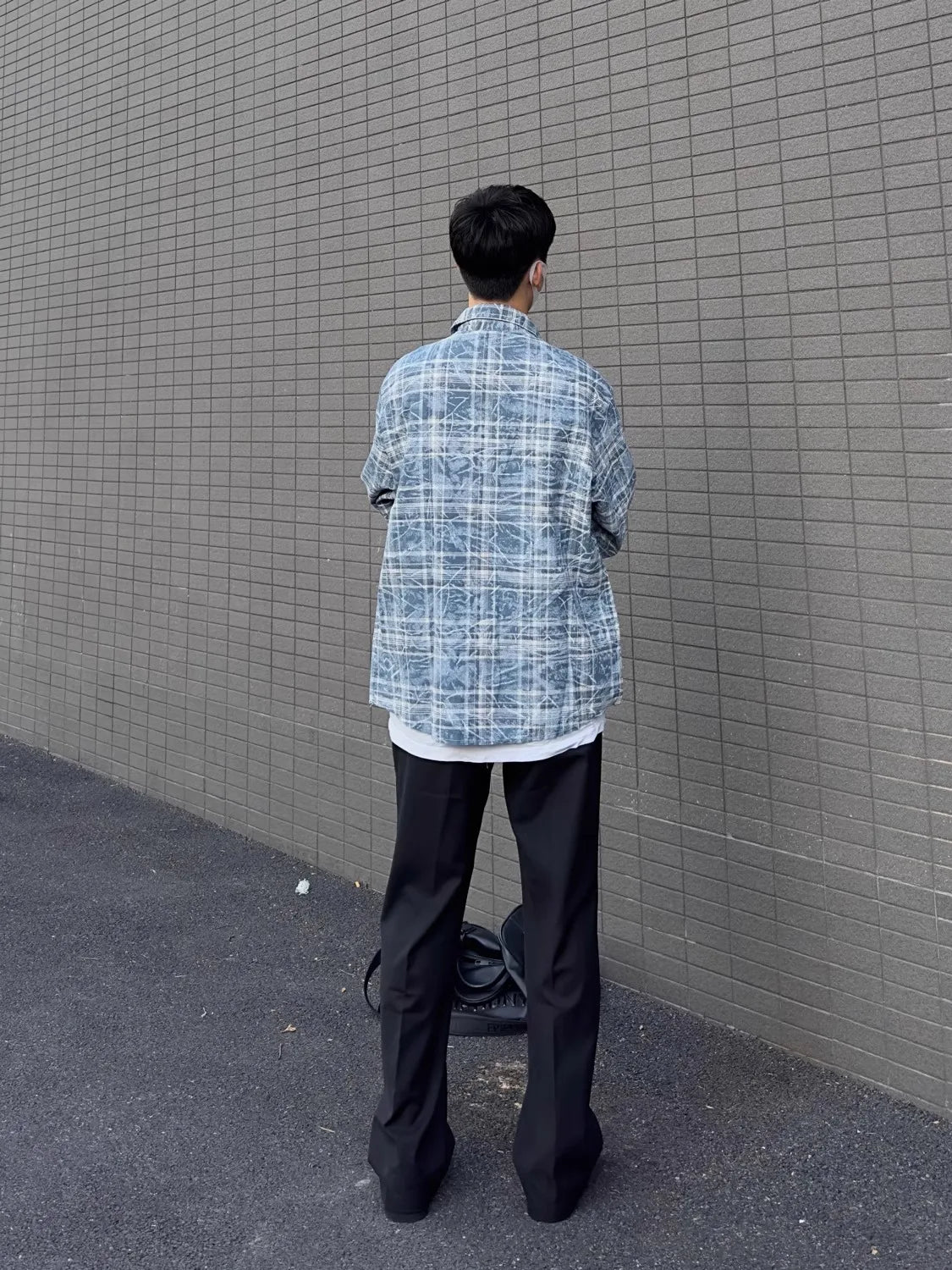 American Vintage 2024 Summer Men's Loose Tie Dyed Cotton Shirt Youth Streetwear Loose Long-sleeved Top Plaid No ironing shirt