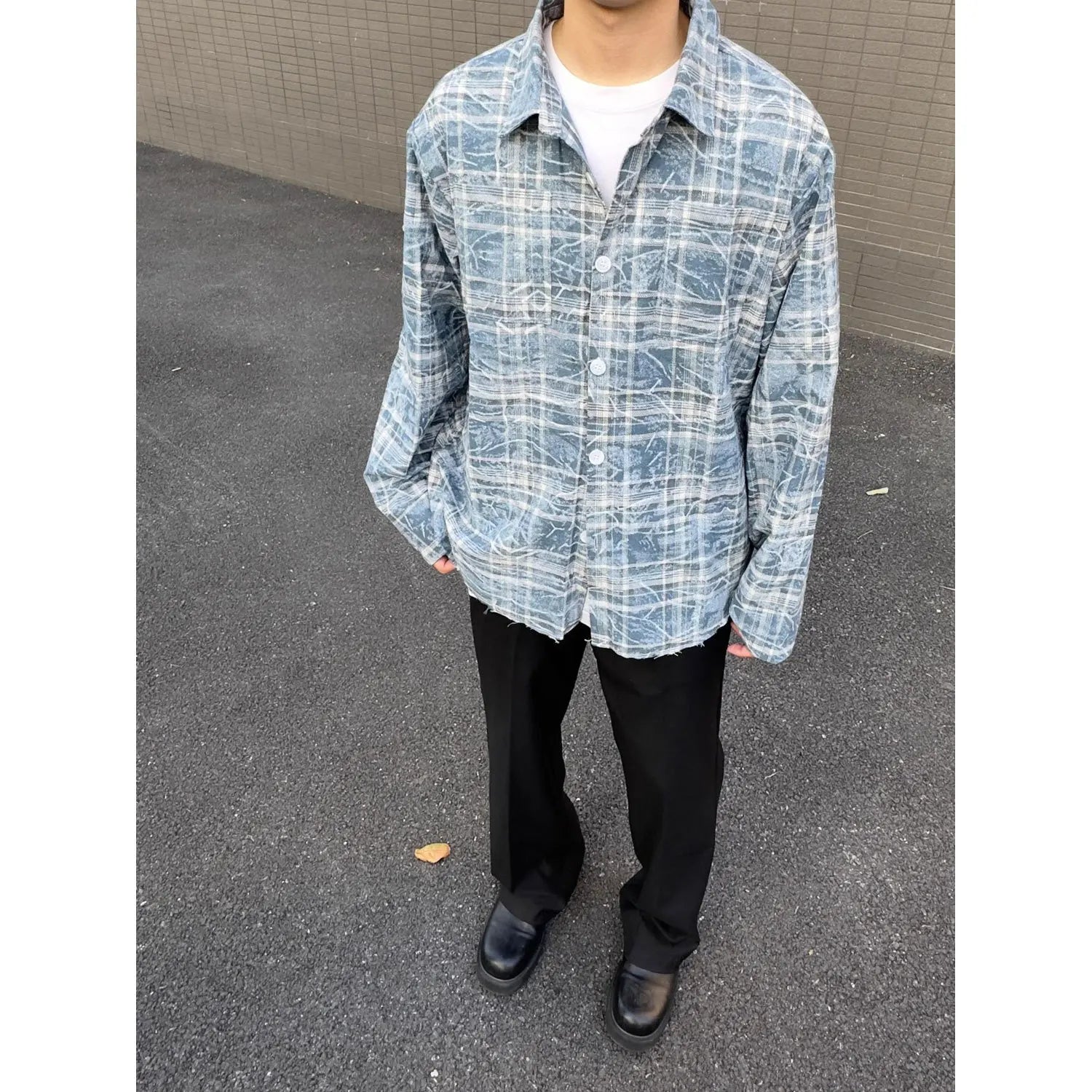 Aidase American Vintage 2024 Summer Men's Loose Tie Dyed Cotton Shirt Youth Streetwear Loose Long-sleeved Top Plaid No ironing shirt
