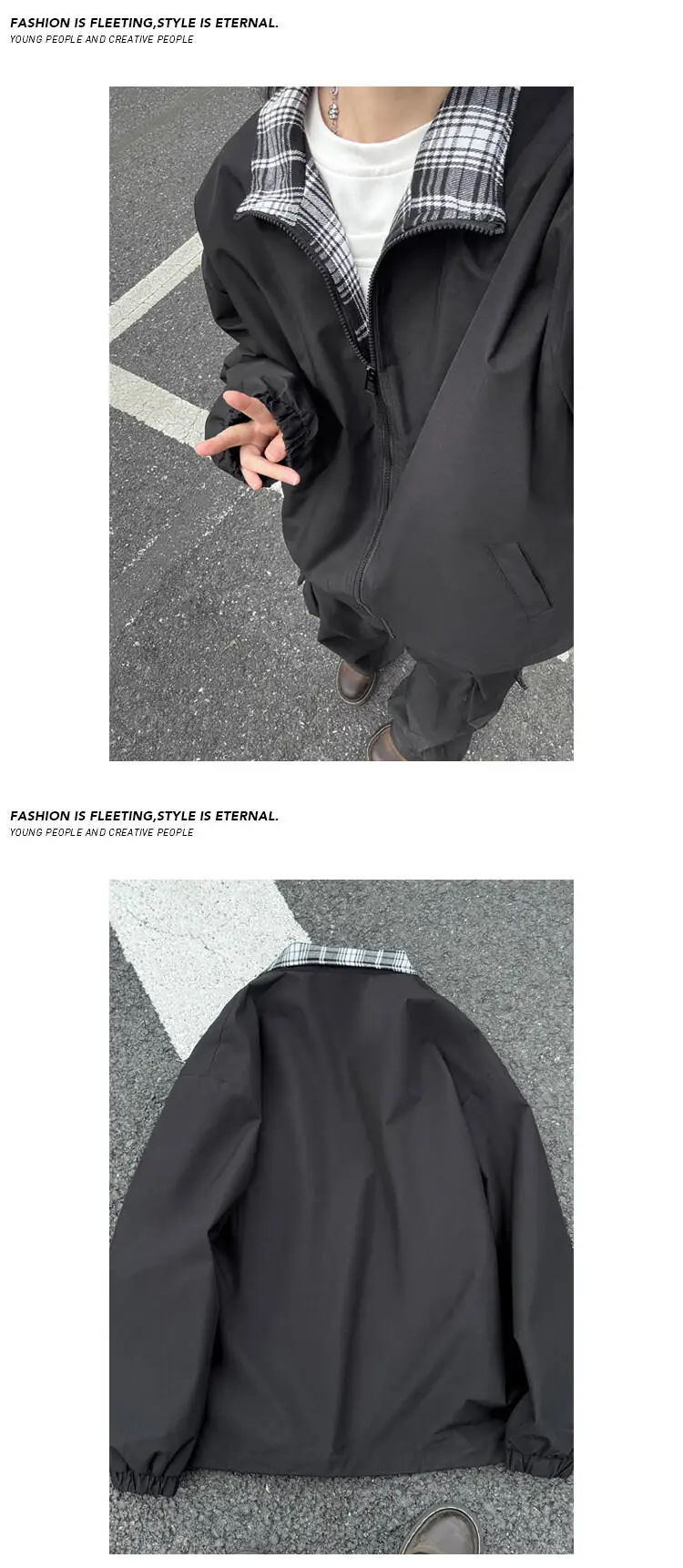 AIDASE  -  Autumn Cleanfit Plaid Interior Workwear Jaet Men's Rigorous Haome Stand Collar Casual Couple's Outerwear