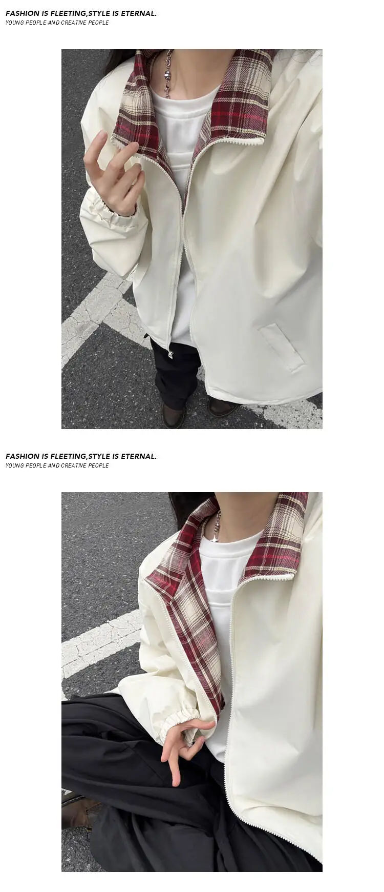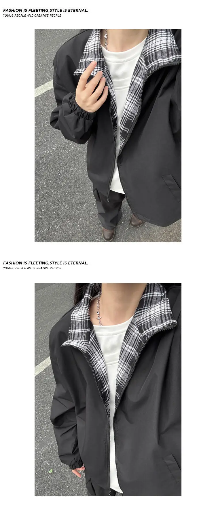 AIDASE - Autumn Cleanfit Plaid Interior Workwear Jaet Men's Rigorous Haome Stand Collar Casual Couple's Outerwear