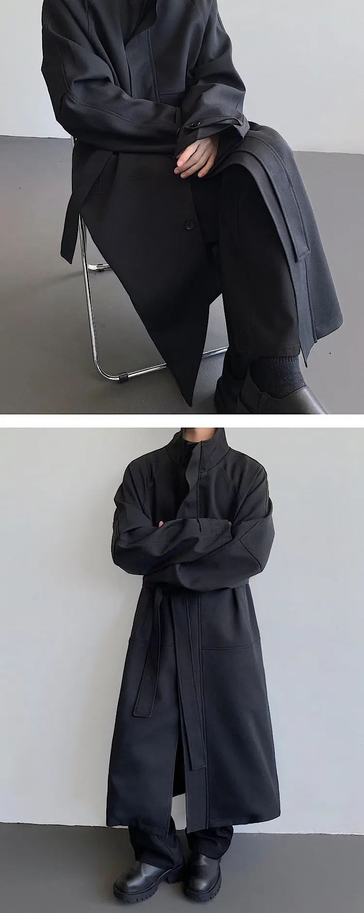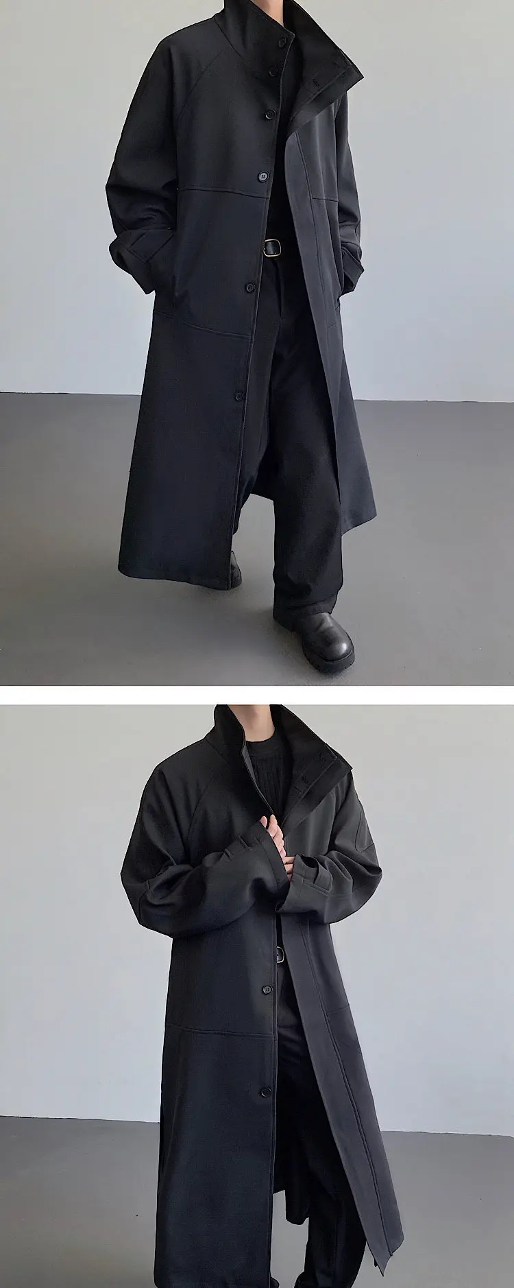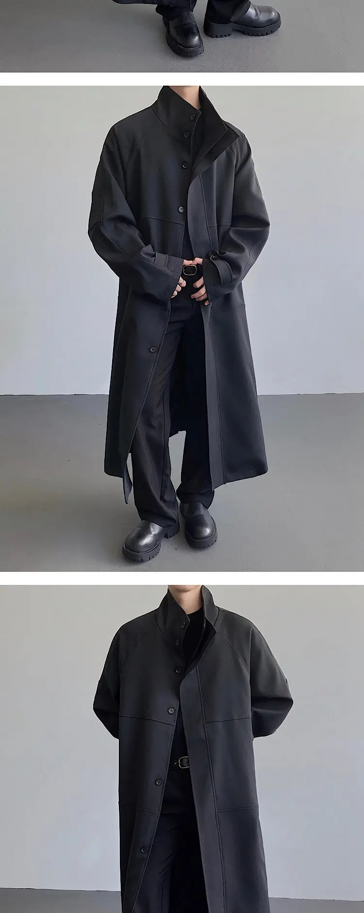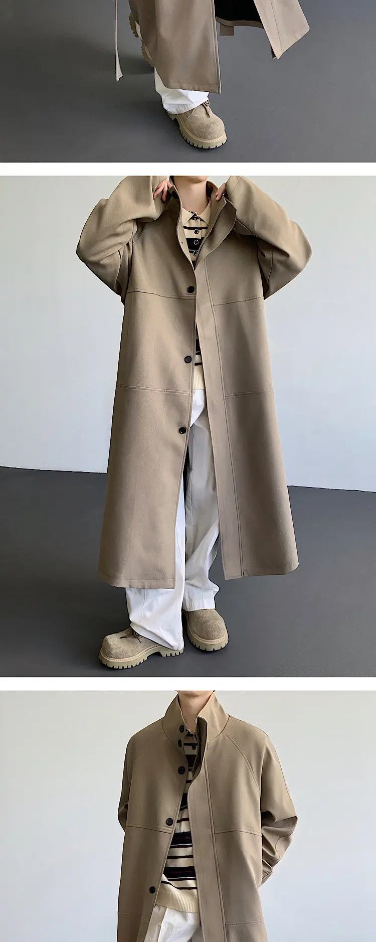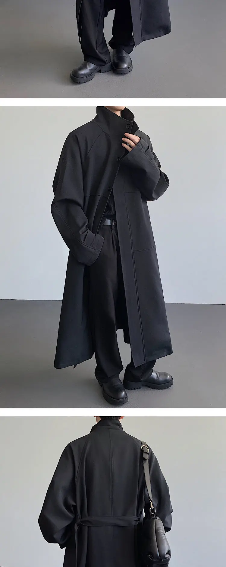 AIDASE - Autumn New Men's Mid-Length Trench Coat Korean Style Over-the-Knee Long Sleeve Lace-up Stand collar Windbreaker 21E7663
