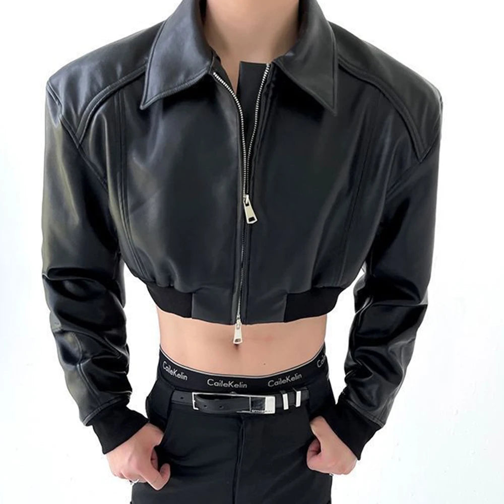 Aidase Autumn Product Design Sense Lgbt Sexy Navel Exposed Fashion High Street High Waist Double Zipper Wide Shoulder Leather Jacket