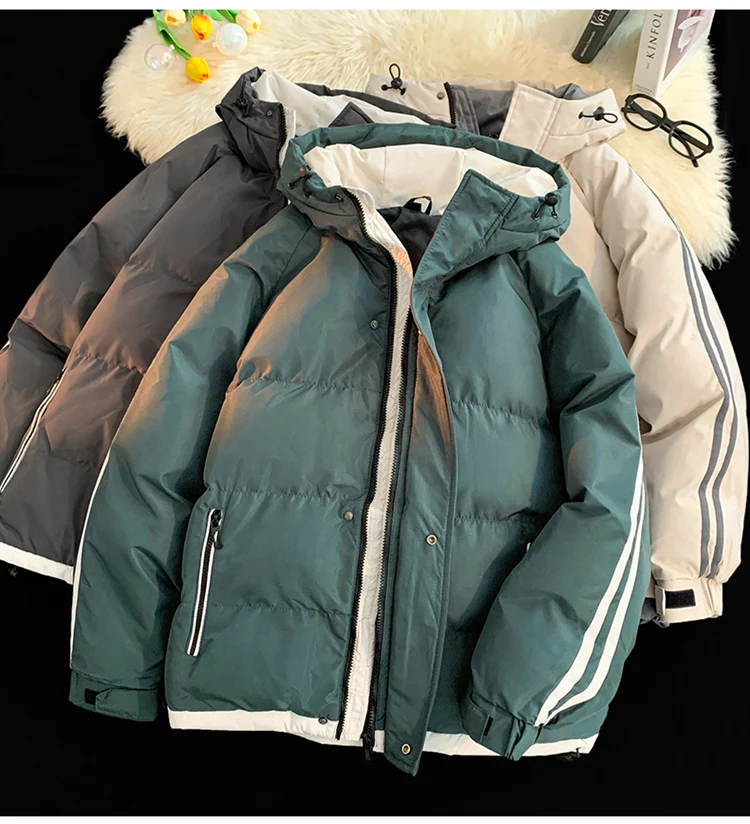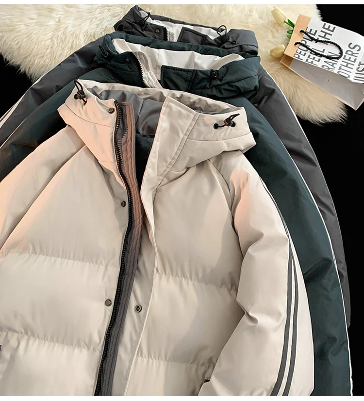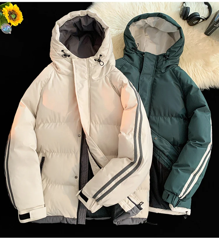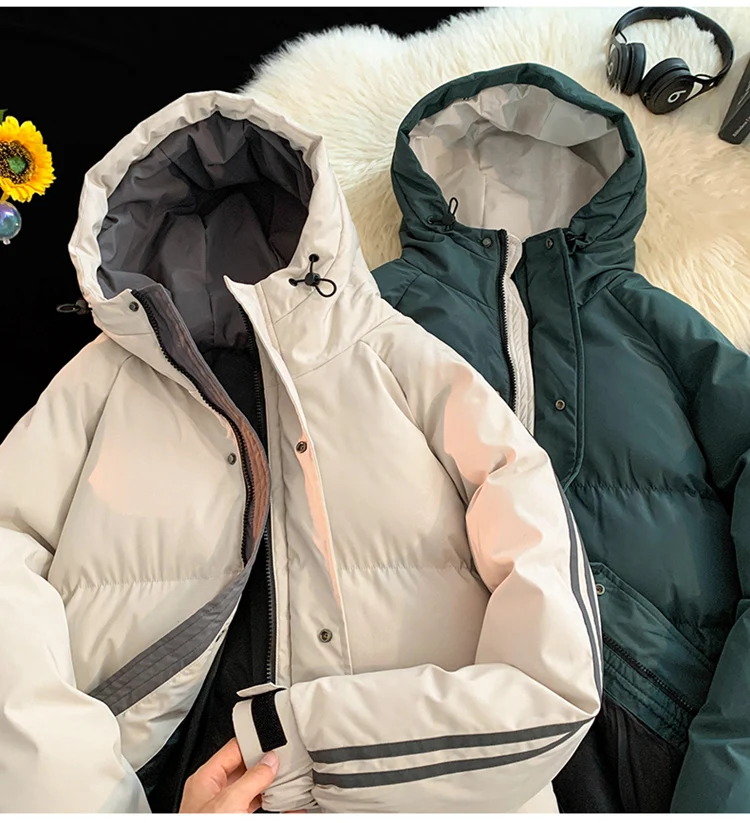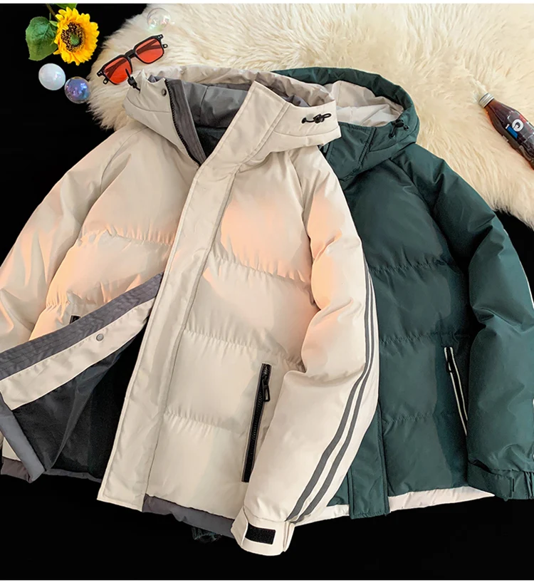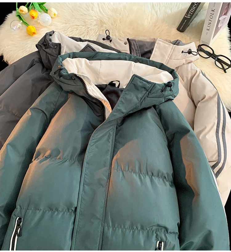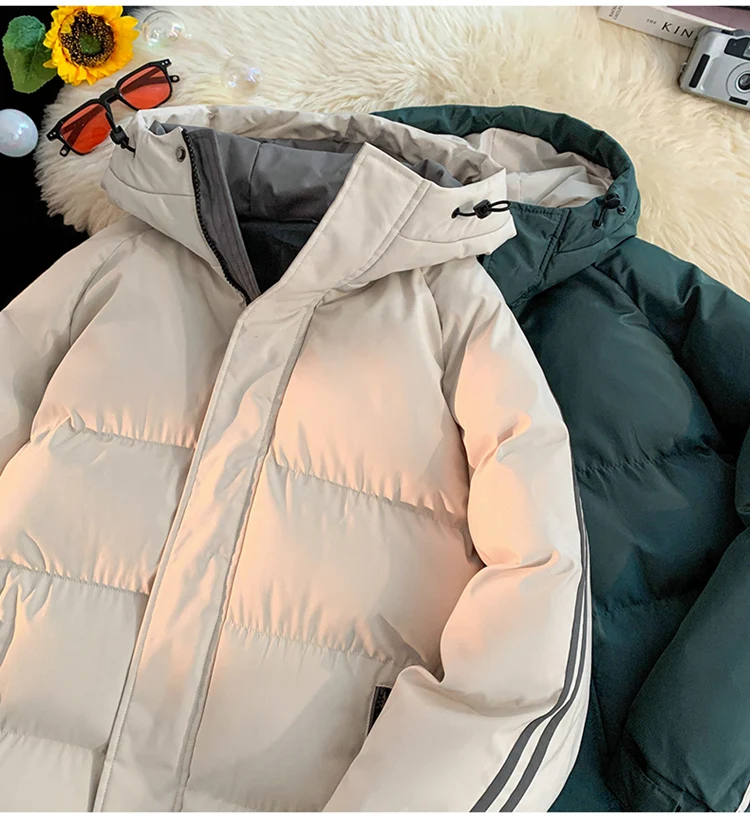 Aidase Autumn Winter Korean Fashion Trend Hooded Cotton-Padded Jacket Men Casual Loose Thick Warm Parka Coat Winter Puffer Jacket Men