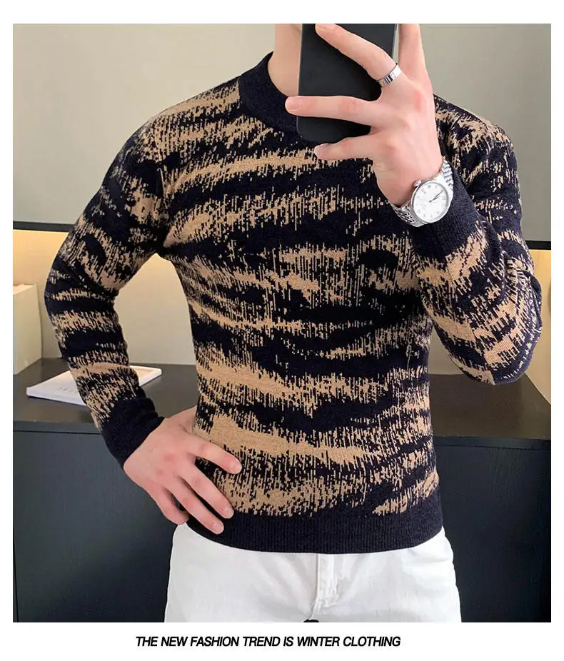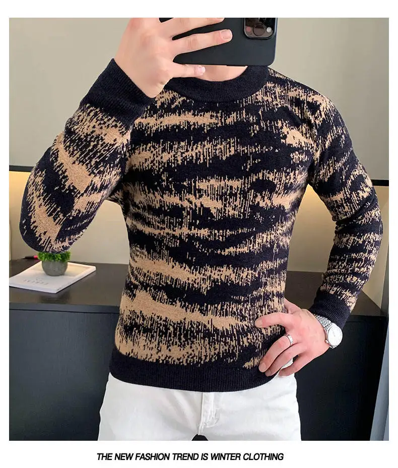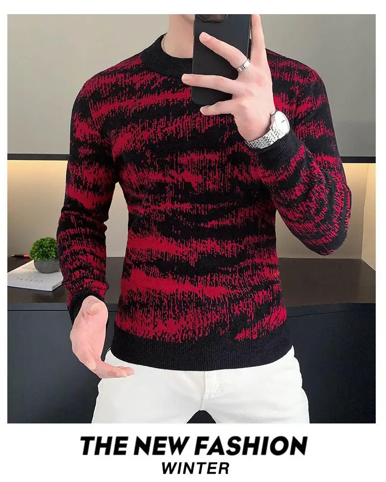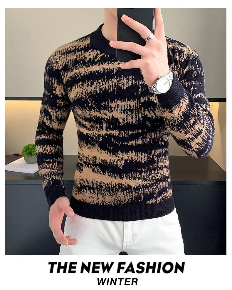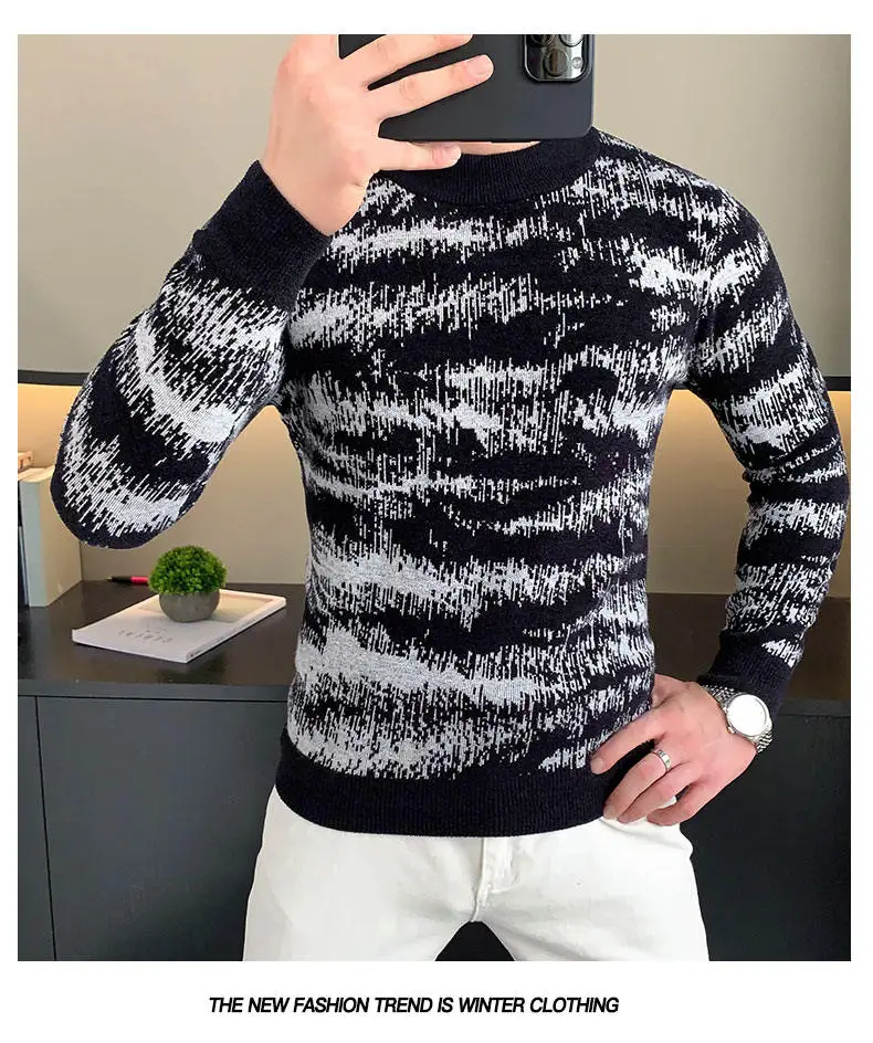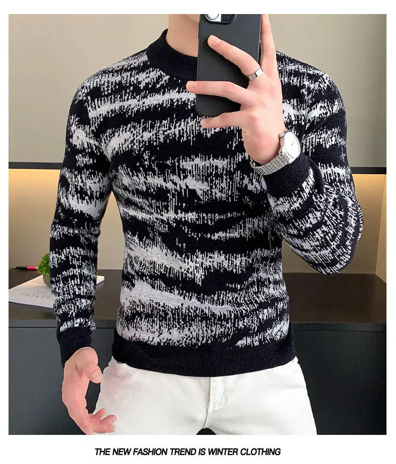 Aidase Autumn Winter Velvet Knitted Sweater Men Long Sleeve Casual Business Sweaters Comfortable Warm Versatile Social Pullover Tops
