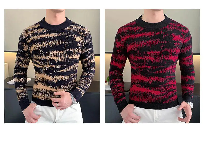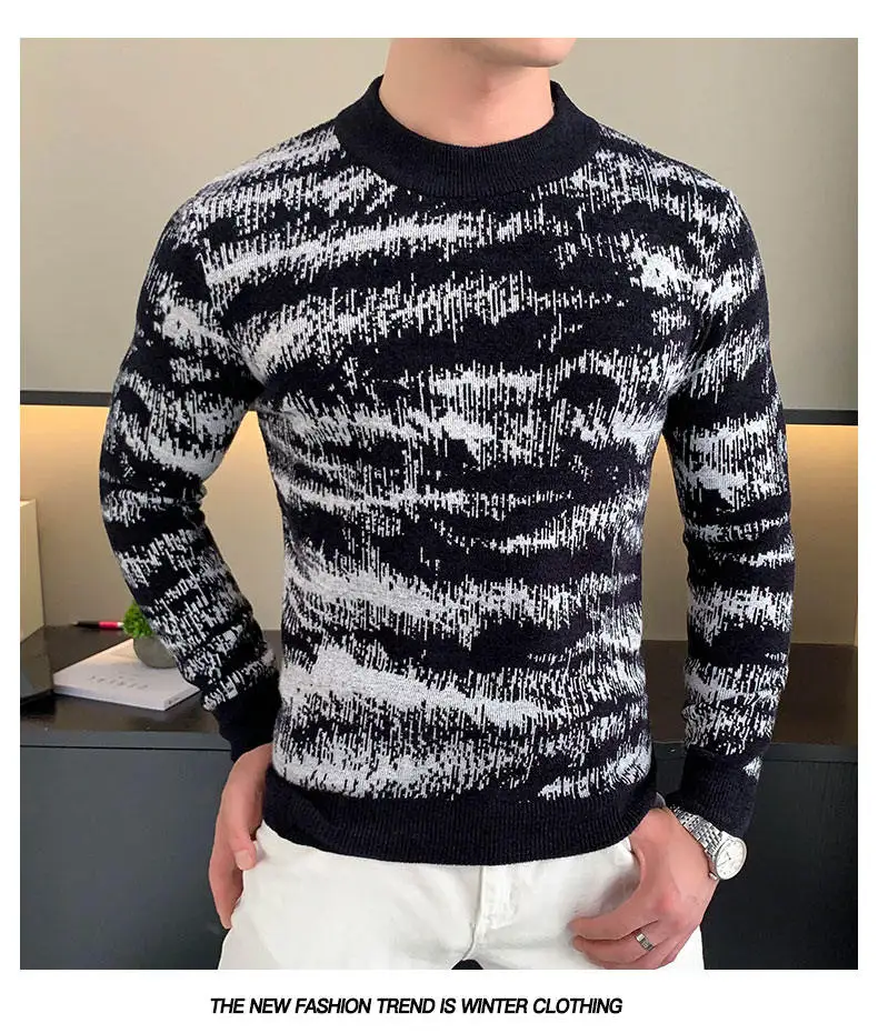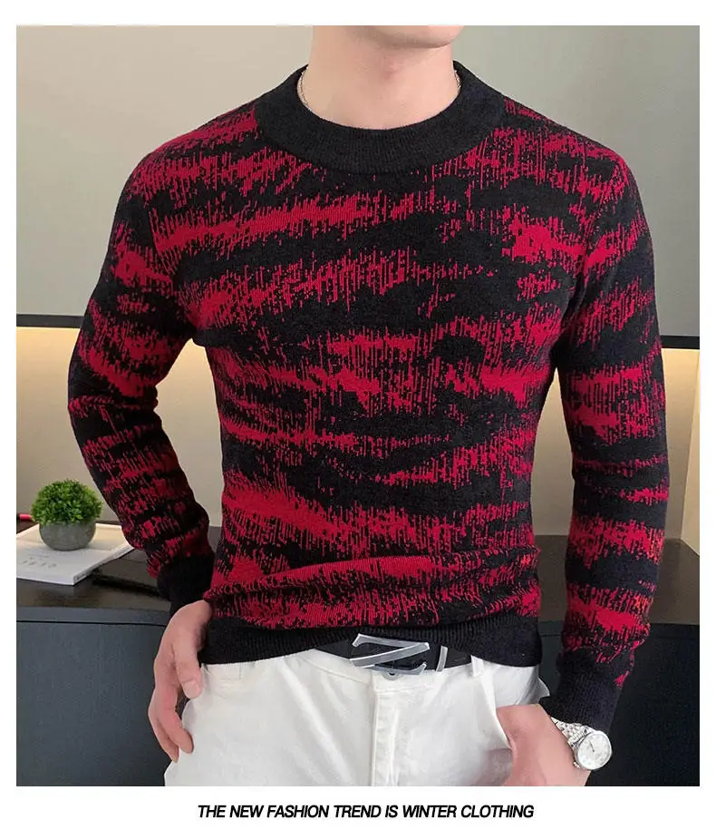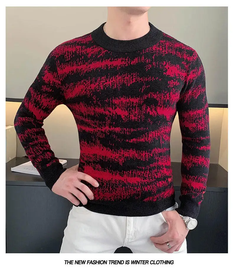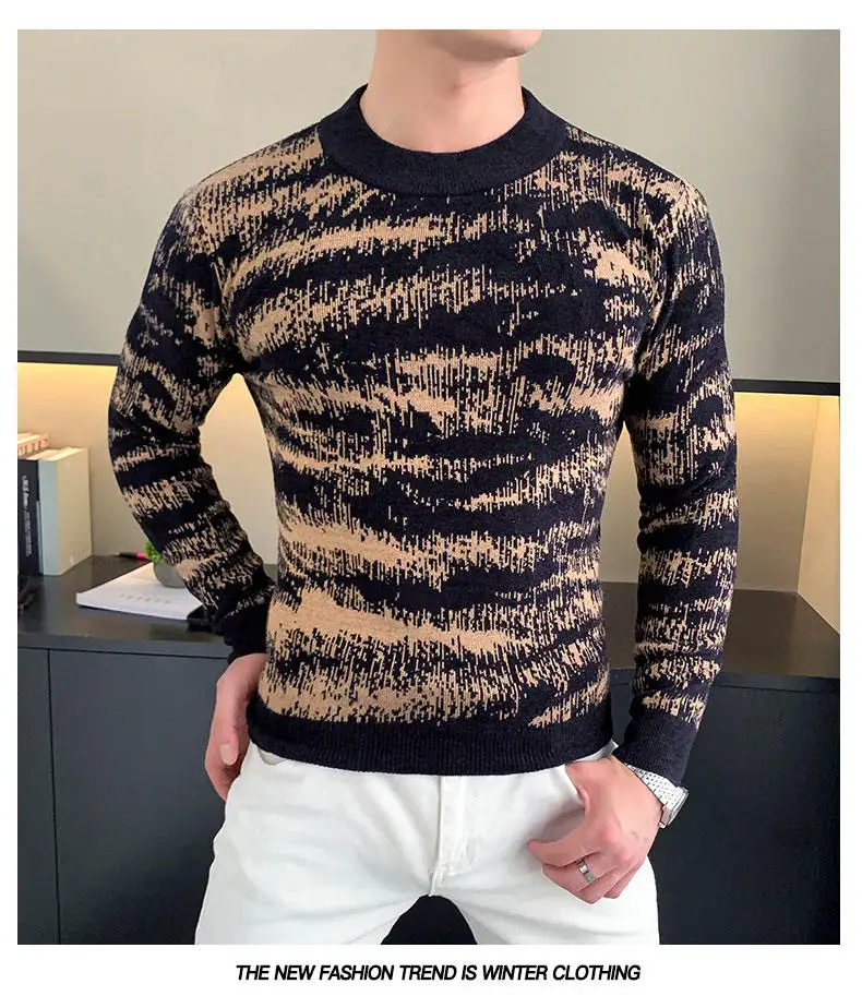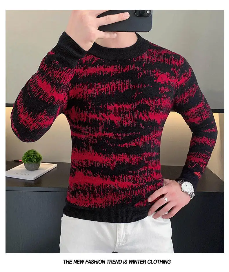 Aidase Autumn Winter Velvet Knitted Sweater Men Long Sleeve Casual Business Sweaters Comfortable Warm Versatile Social Pullover Tops