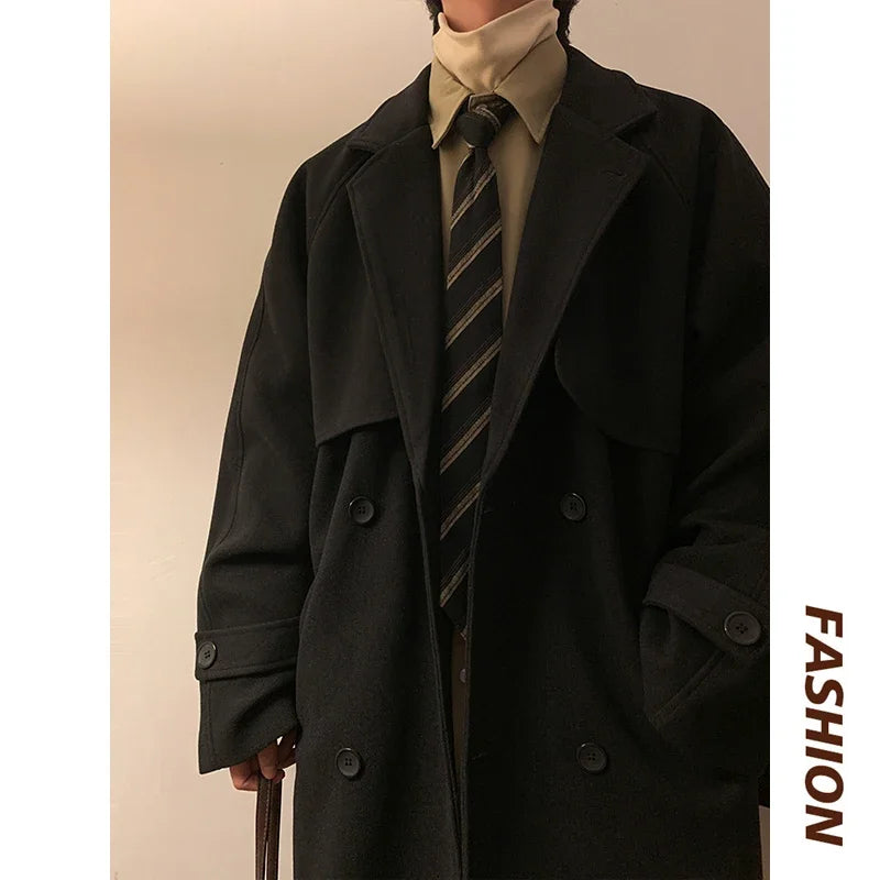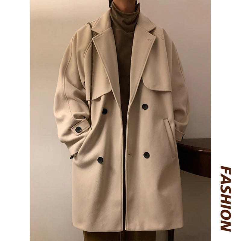 Aidase Autumn Winter Wool Jacket Men Casual Solid Wool Coats Male Loose Turn Down Collar Mens Long Coat