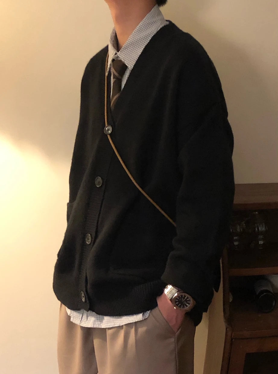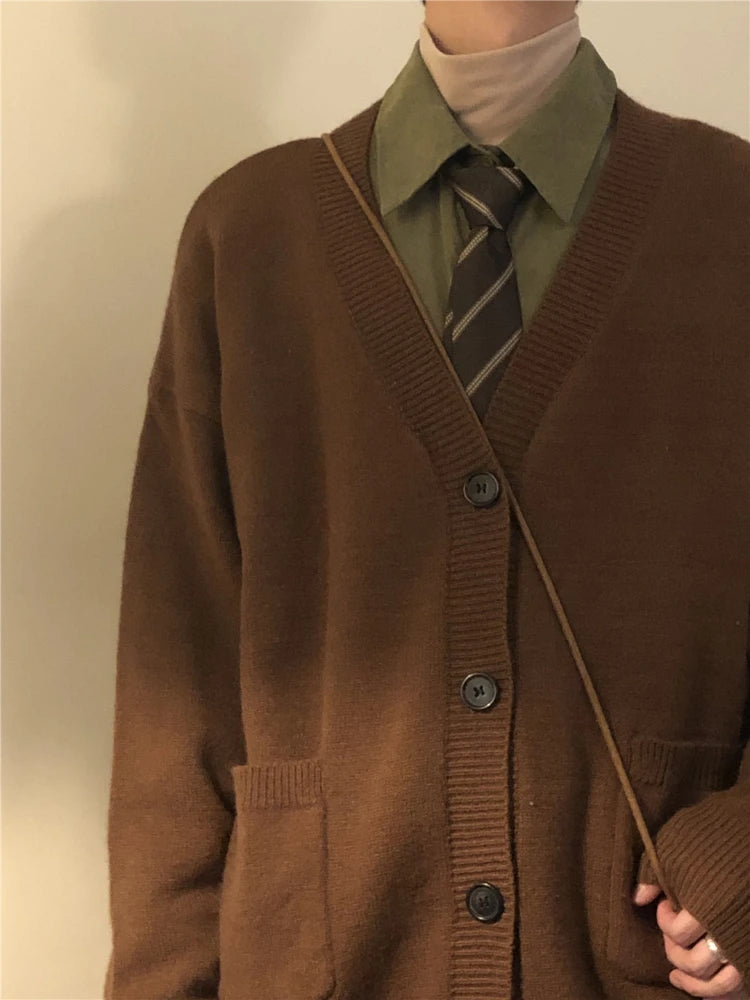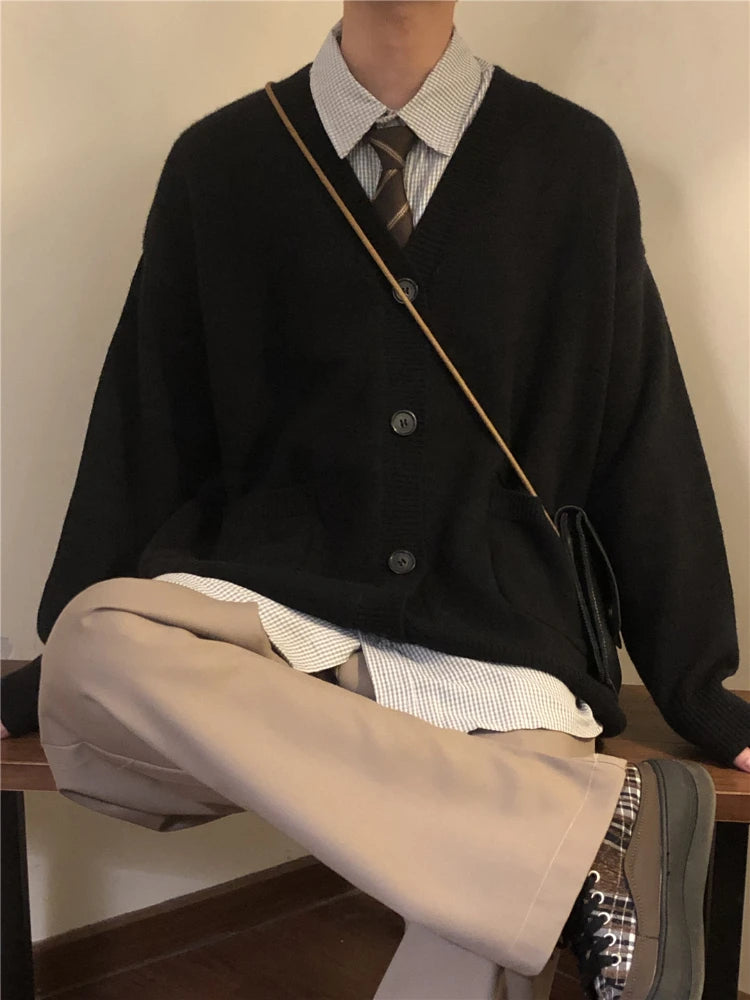 Aidase Cardigans Men Retro Simple Streetwear Autumn Winter Warm V-neck Solid Pocket Popular American Style Male Knitting Casual Daily