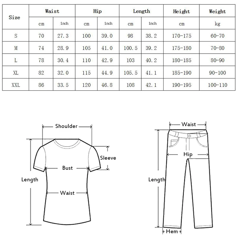 M =Waist 74cm , Length 100.5cm,Hip 105cm ,For Weight 70-80kg Height 175-180cm;