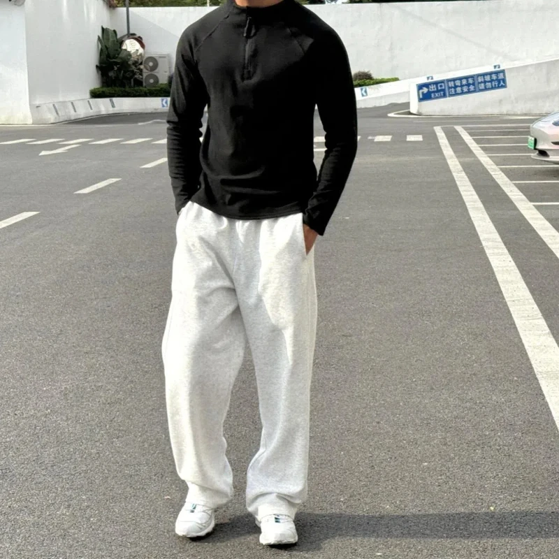 AIDASE - Casual Sports Men's Spring and Autumn New Splicing O-Neck Zipper Fashion Solid Color Slim Fit Versatile Long Sleeve Top