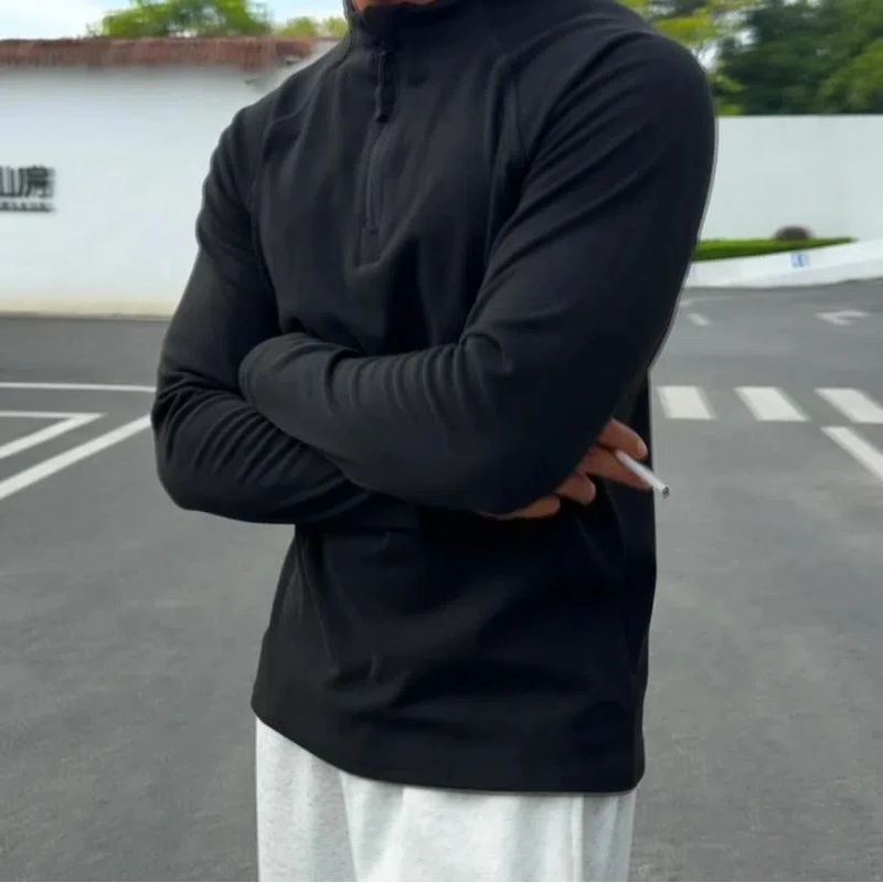 AIDASE  -  Casual Sports Men's Spring and Autumn New Splicing O-Neck Zipper Fashion Solid Color Slim Fit Versatile Long Sleeve Top
