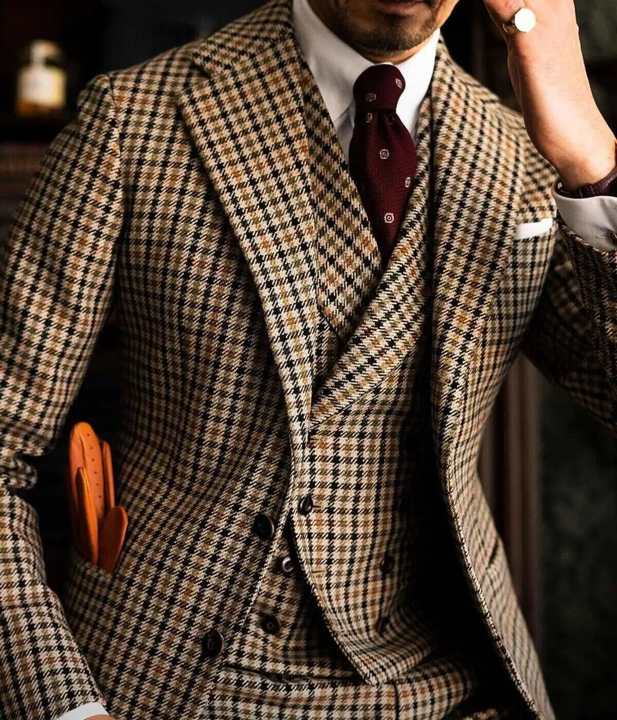 AIDASE - Classic Men's Suit Plaid Business Wedding Men Suits Comfort 3-Pieces Tailor-Made Groom Groomsman Formal Occasions Customized