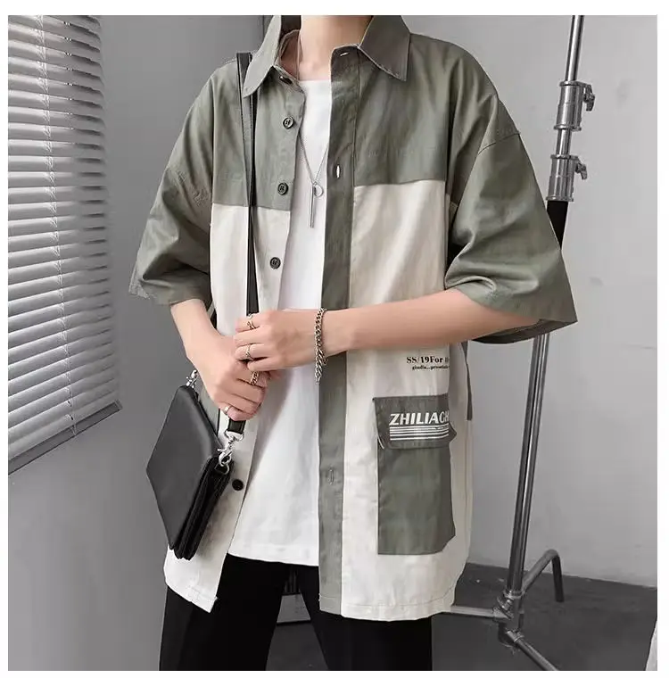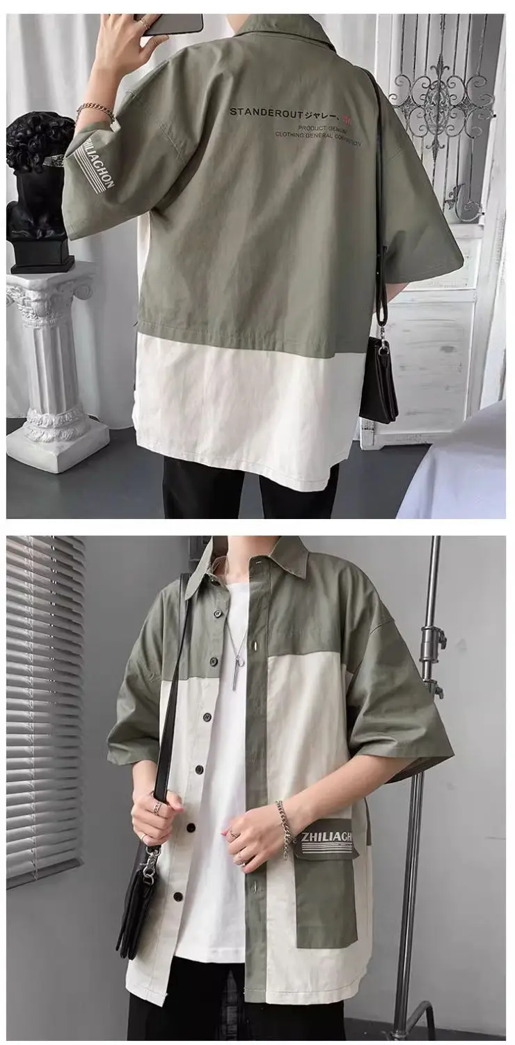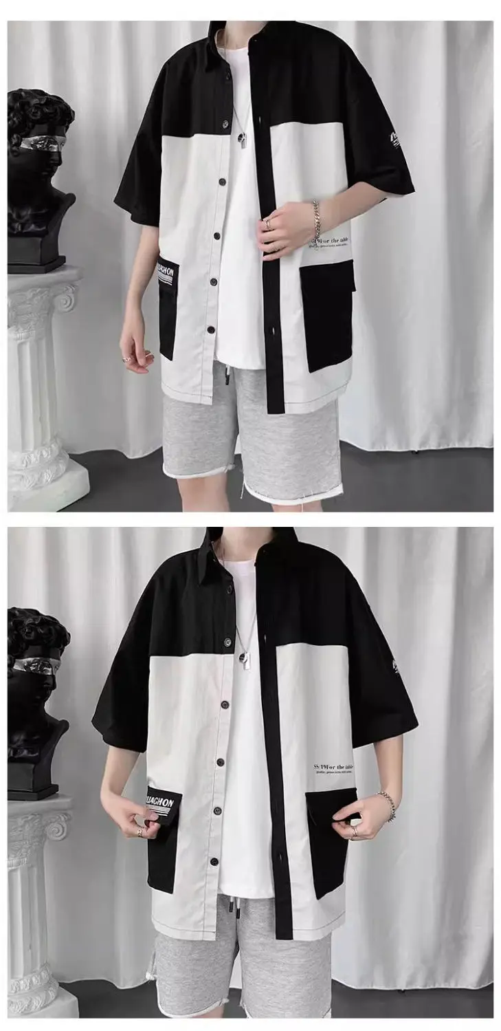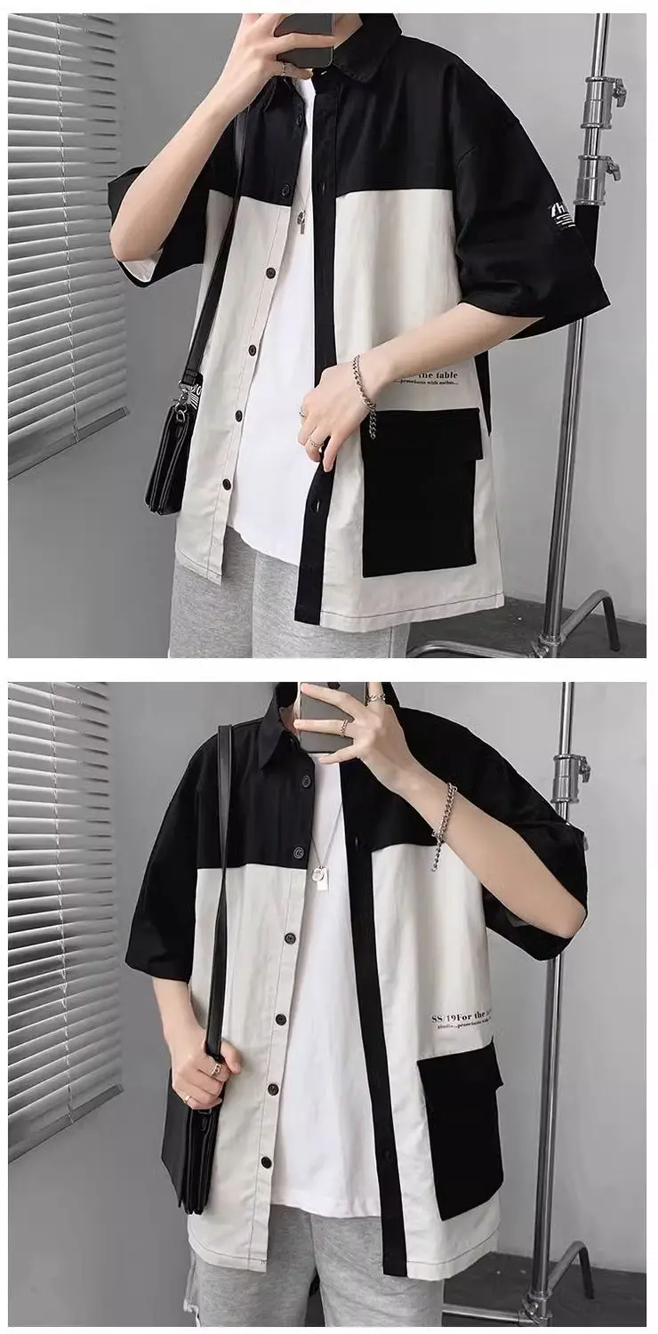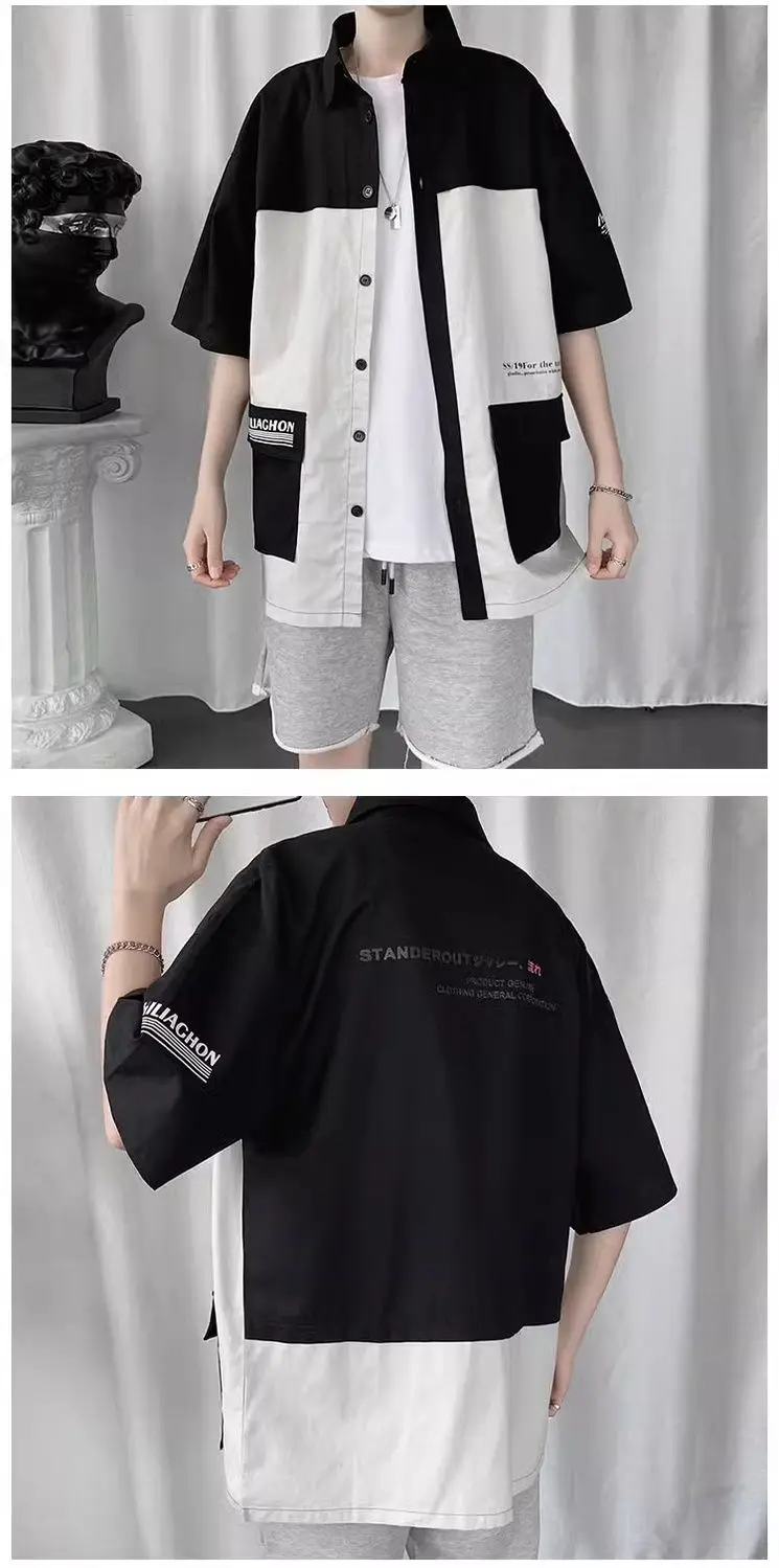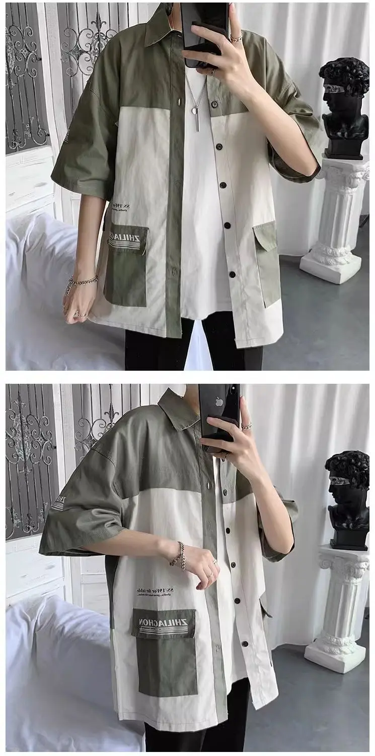AIDASE  -  College Style Short-sleeved Shirt Men's Casual Loose Hong Kong Style Work Shirt Korean Style Fashion Summer Trend Contrast Top