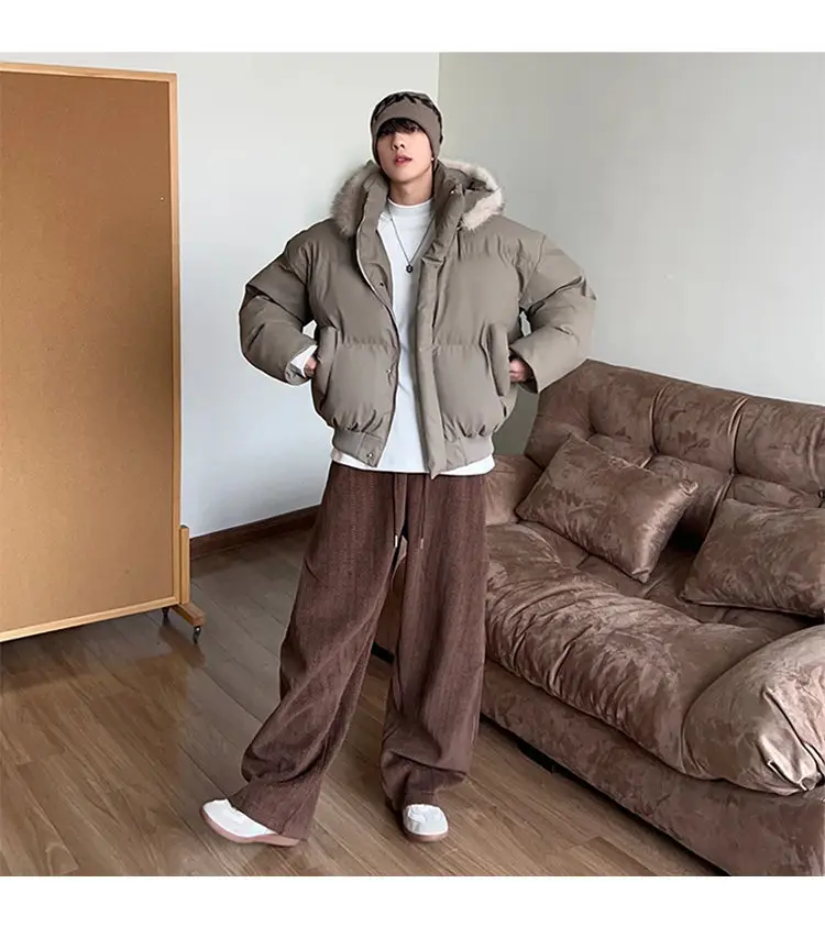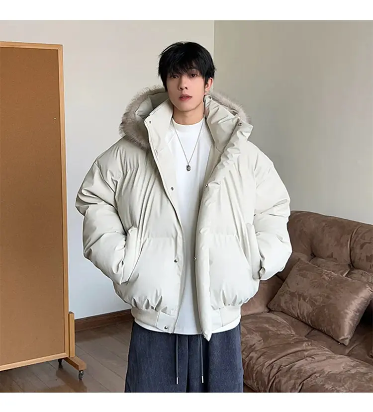 AIDASE - Detachable Hooded Men's Cotton Jacket American Style Short Fur Collar Long Sleeve Solid Color Casual Male Coats 21E7670