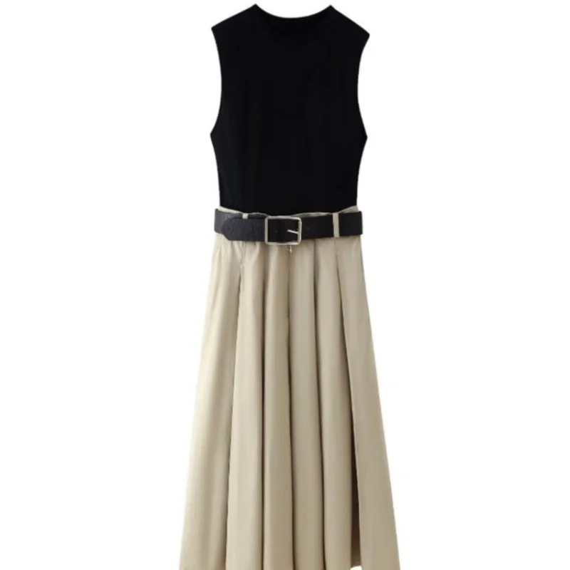 AIDASE - Elegant Contrasting Pleated Maxi Dress Women Daily Commuting Round Neck Sleeveless Long Dresses 2025 New Summer Casual Vestidos