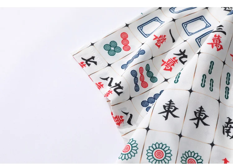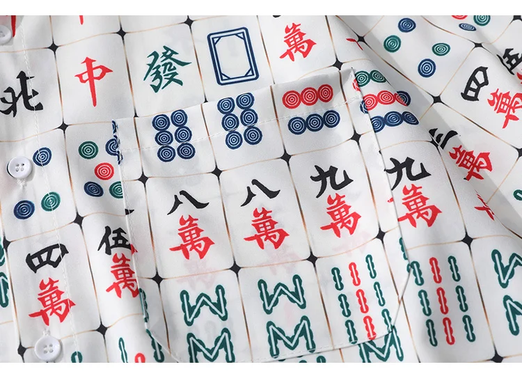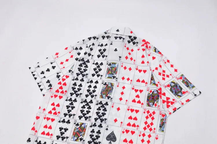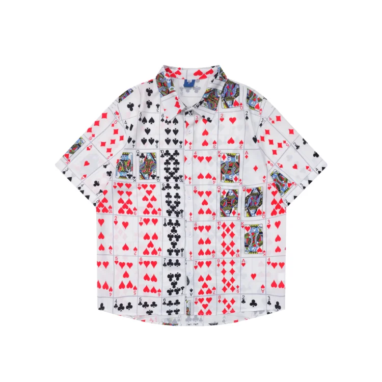 AIDASE - Europe American Street Retro Fun Printed Short Sleeved Shirt Men's Trendy Loose BF Casual Half Sleeved Shirts Poker Mahjong Tops
