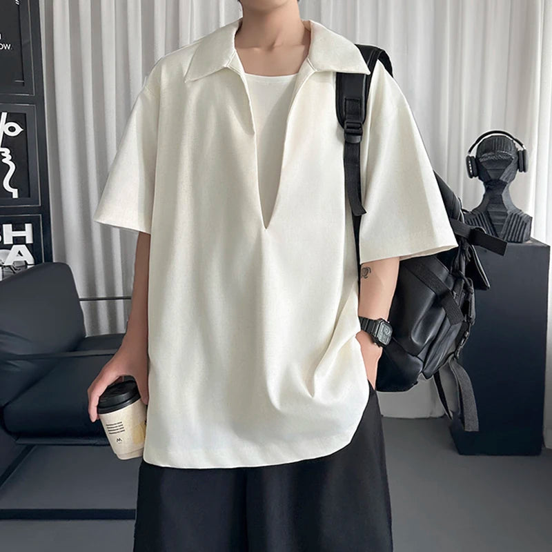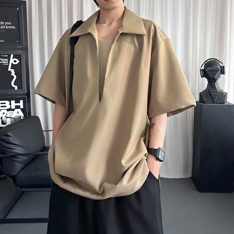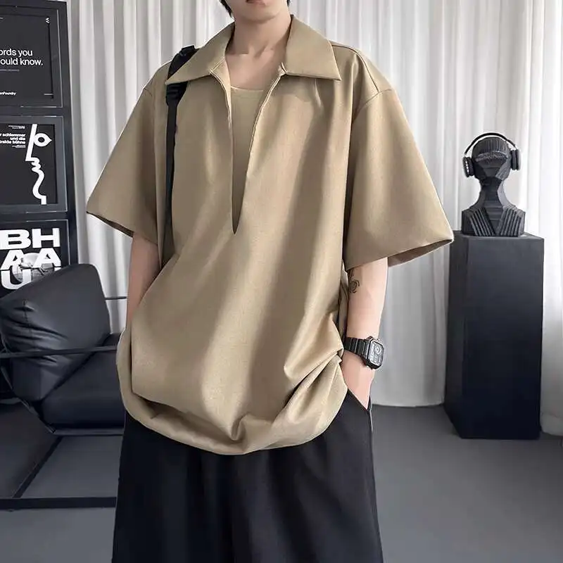 AIDASE - Fake Two-Piece Men's Tops Stylish short sleeve simple solid color male t-shirt summer new trend all-match menswear 21E6628