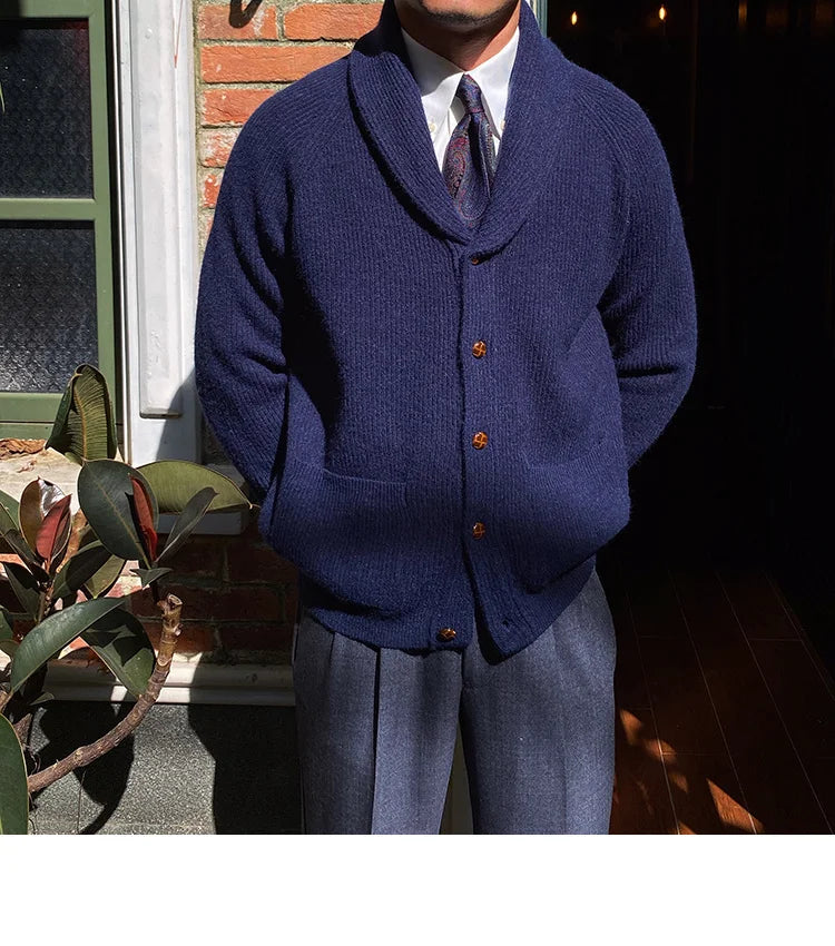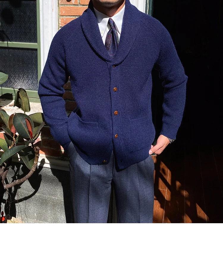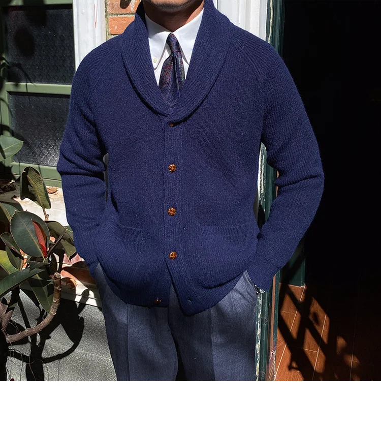 Aidase Fall lapel Sweater Cardigan Men Knitting Pocket Sweaters Winter Warm Coat Men Single Breasted Top Cardigan Sexy Pleated Sweater