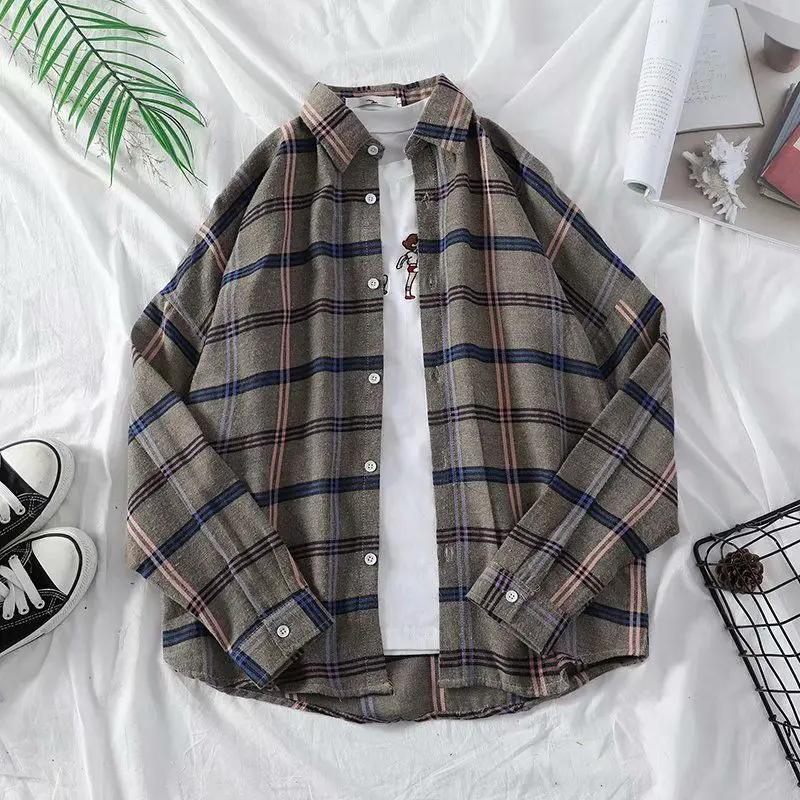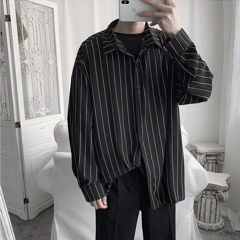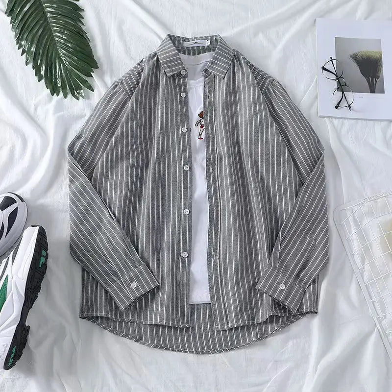 AIDASE - Fashion Lapel Button All-match Printed Striped Shirts Men's Clothing 2025 Autumn New Loose Casual Tops Long Sleeve Korean Shirt