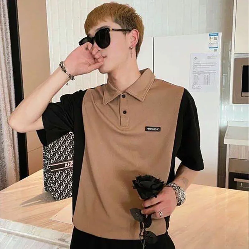 Aidase Fashion Lapel Spliced All-match Polo Shirts Men's Clothing Spring New Oversized Casual Pullovers Loose Korean T-Shirt