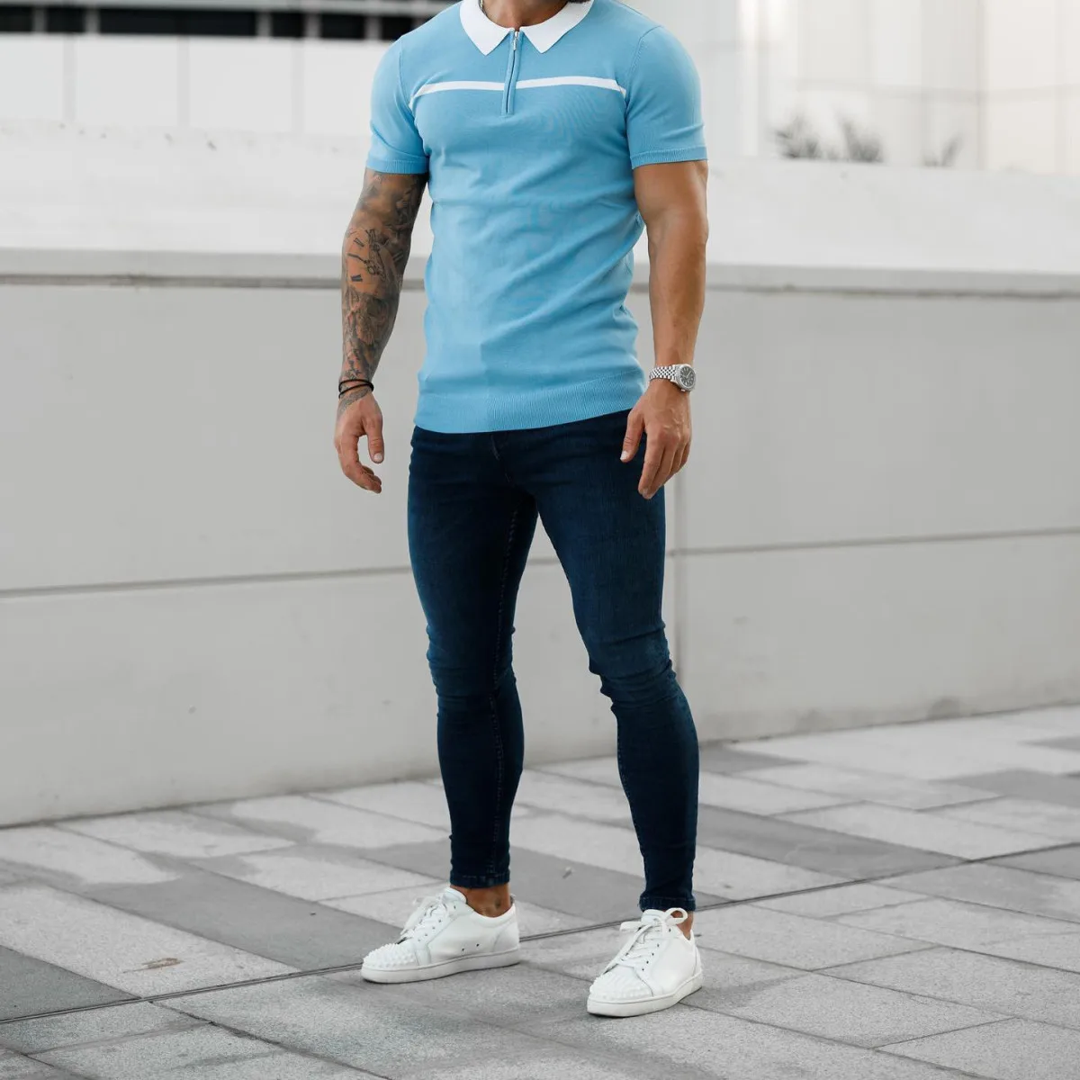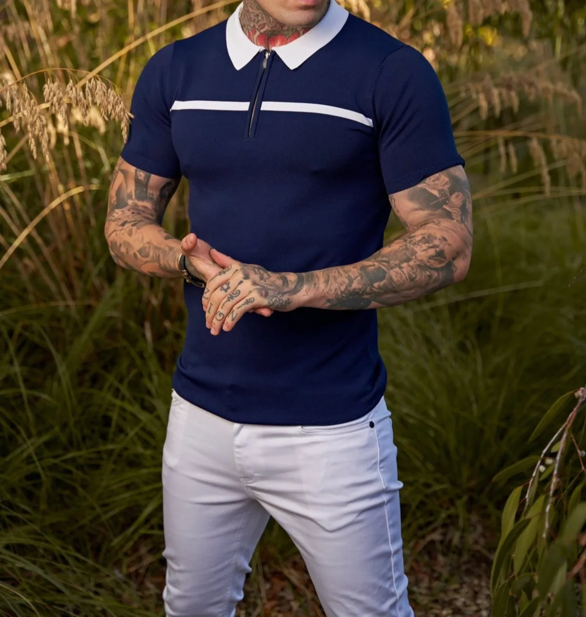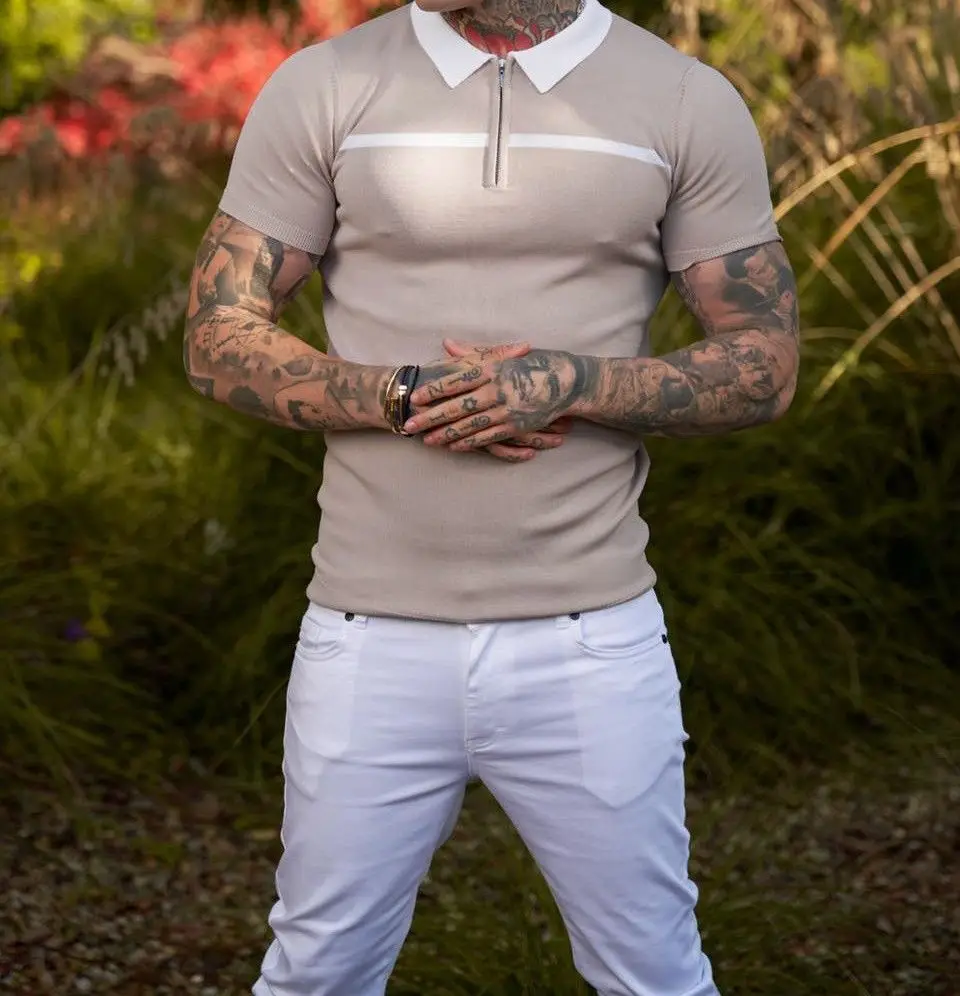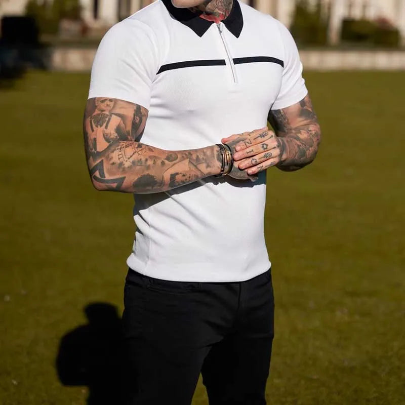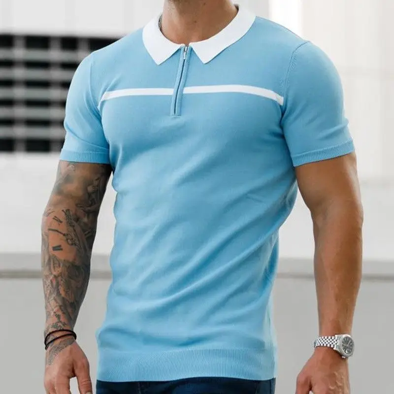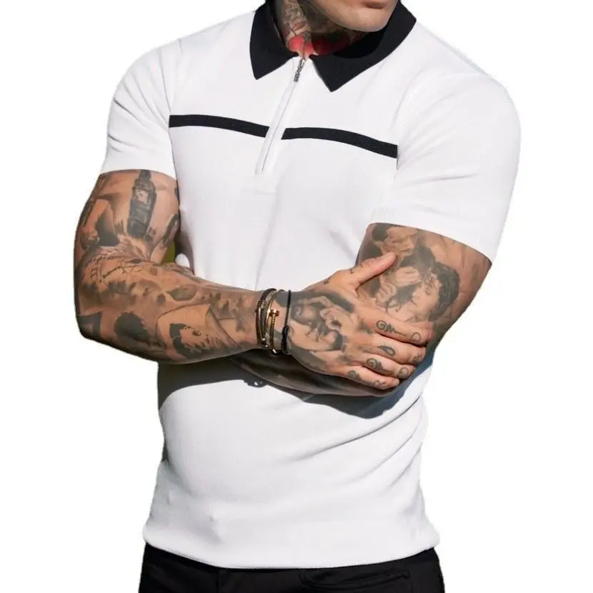 AIDASE - Fashion Lapel Zipper Spliced Korean Short Sleeve T-Shirt Mens Clothing Summer New Slim Casual Tops All-match Tee Shirt