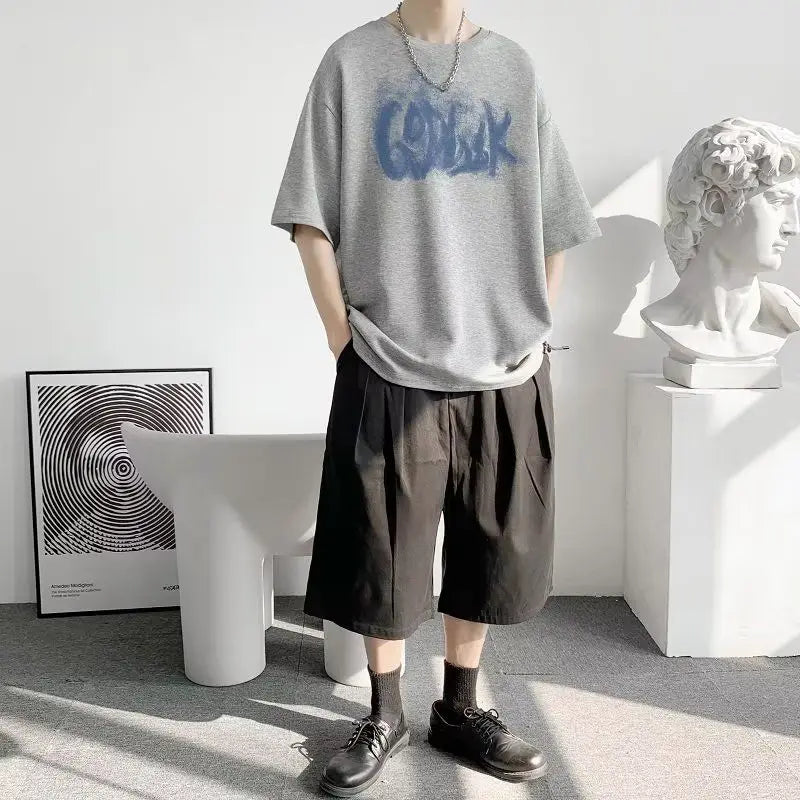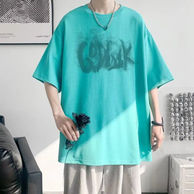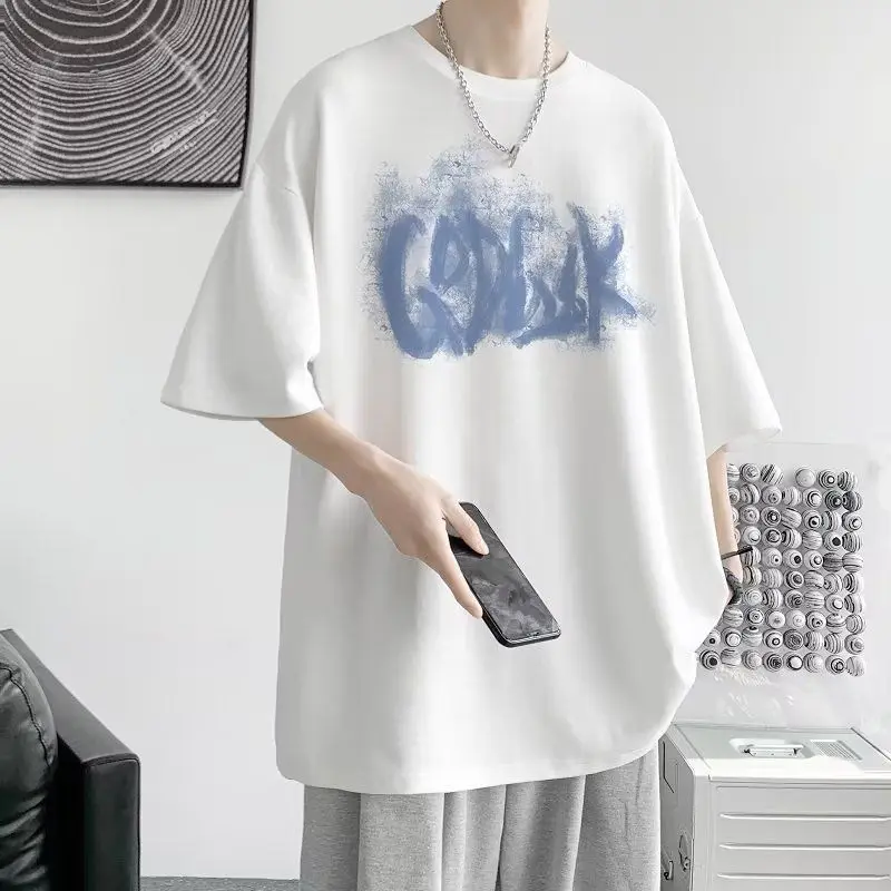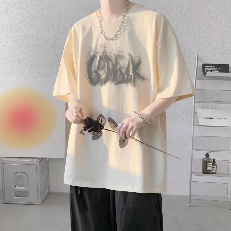 AIDASE - Fashion Loose Printed Letter Casual T-Shirts Men Clothing Summer New Oversized All-match Tops Korean Short Sleeve Tee Shirt