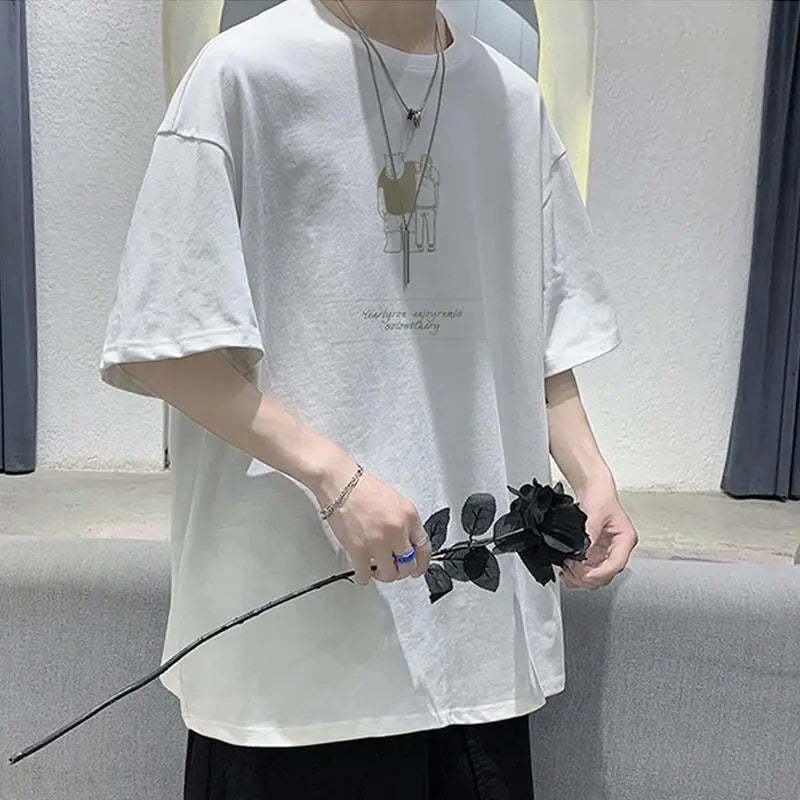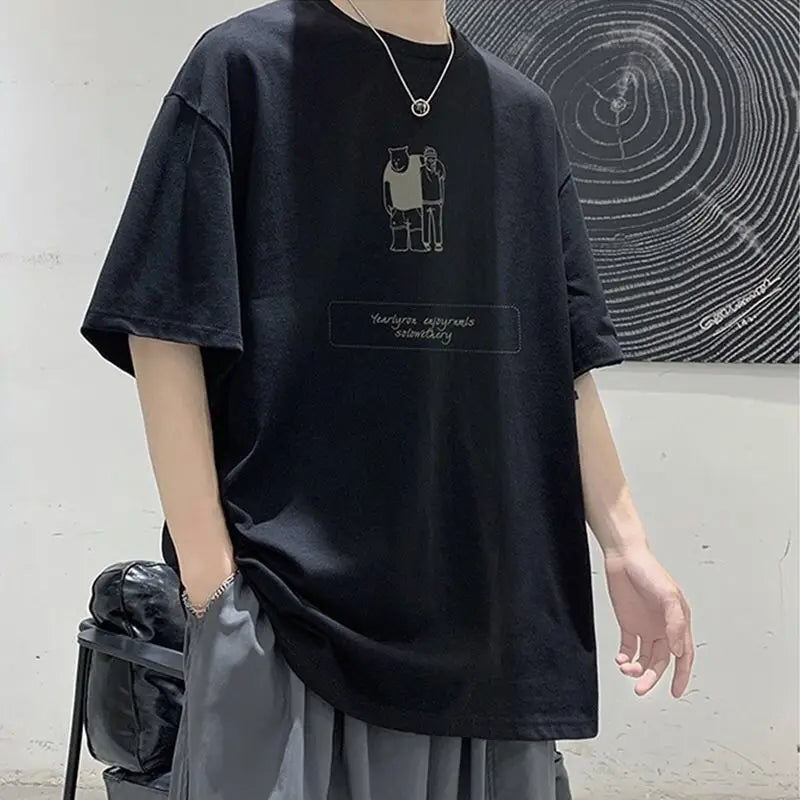 AIDASE - Fashion O-Neck All-match Printed T-Shirt Men's Clothing Spring New Oversized Casual Pullovers Short Sleeve Korean Tee Shirt