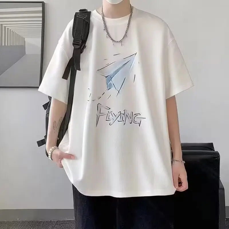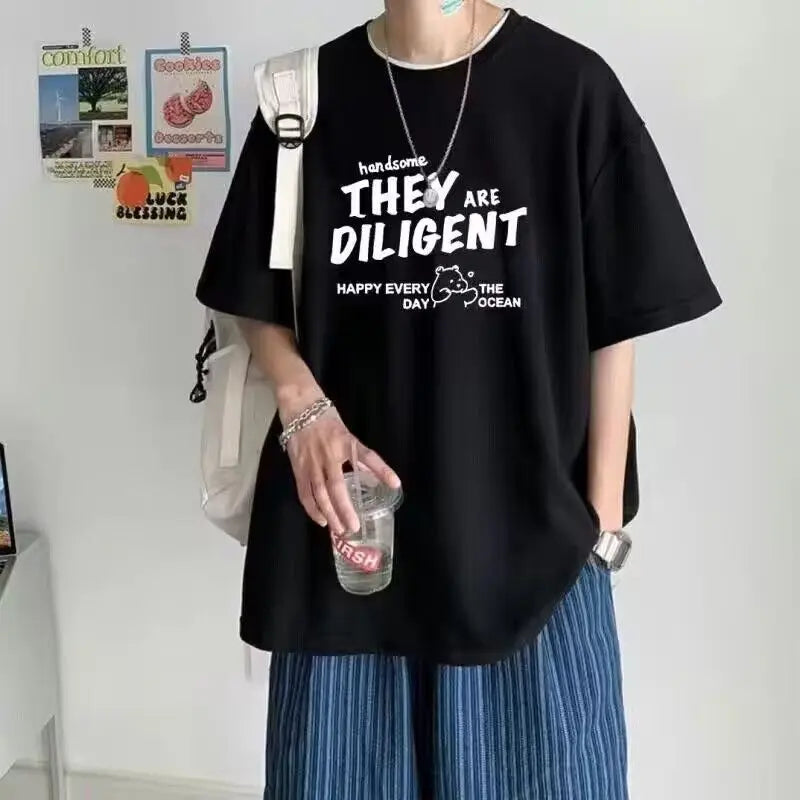 AIDASE  -  Fashion O-Neck Loose All-match Printed Letter T-Shirts Men's Clothing Summer New Oversized Korean Tops Casual Tee Shirt