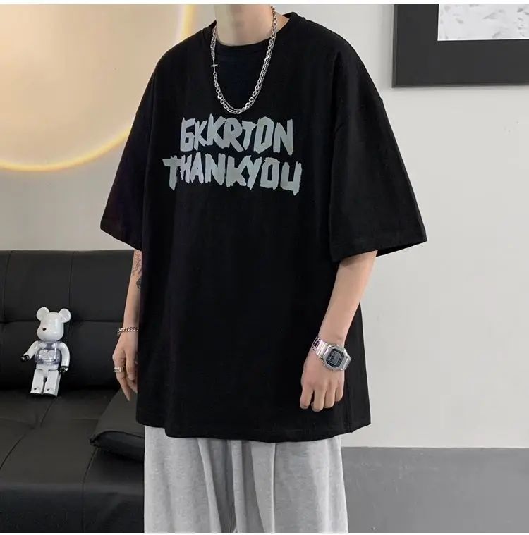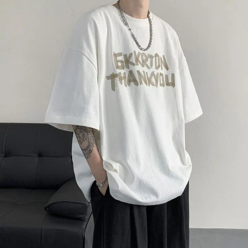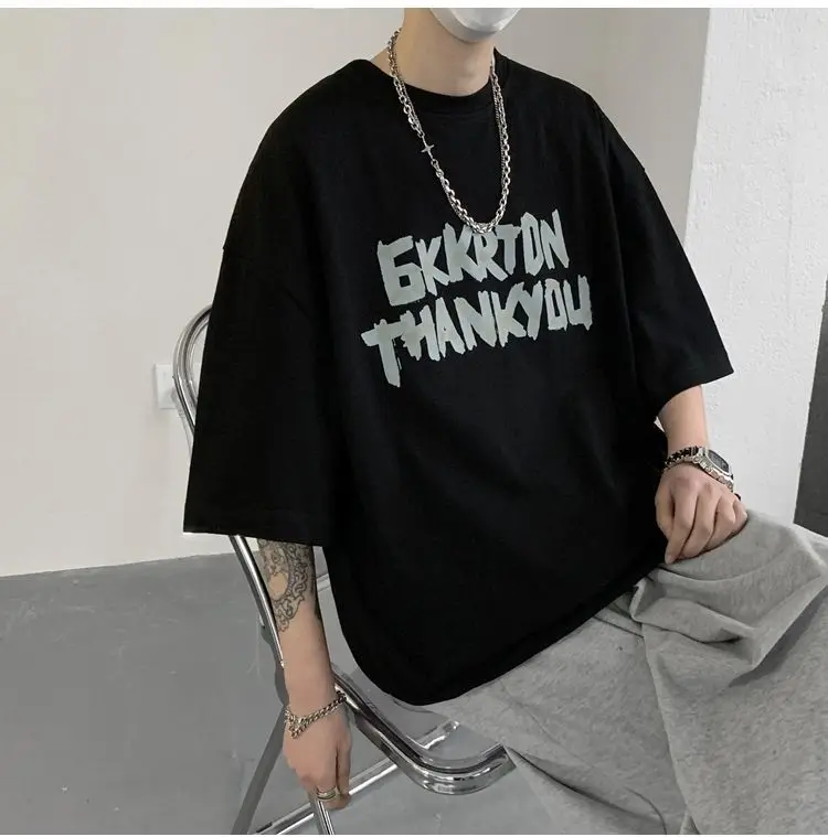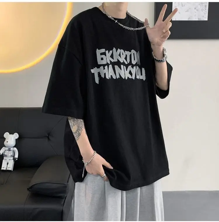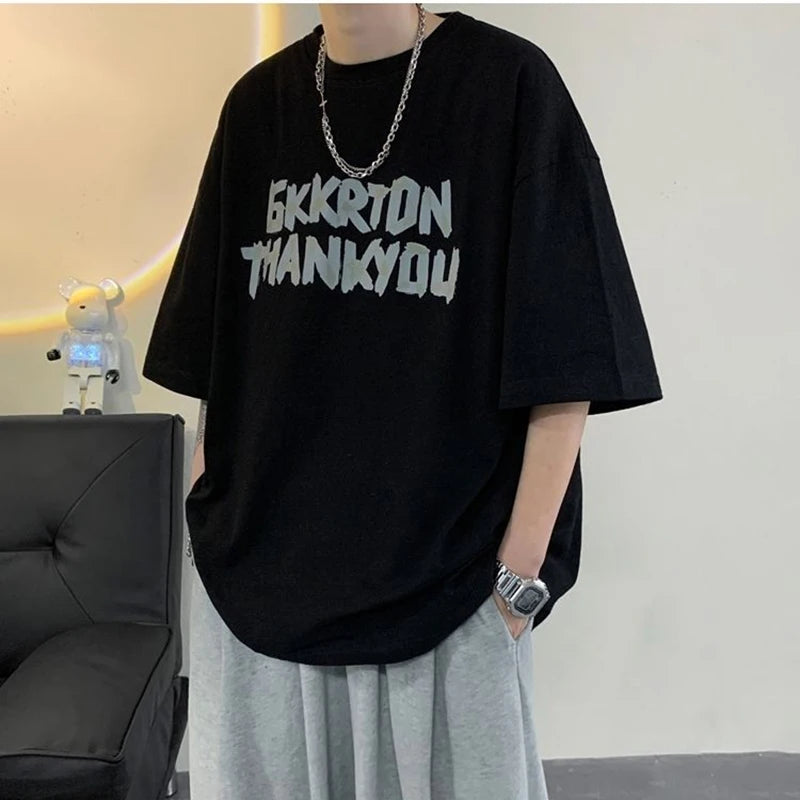 AIDASE - Fashion O-Neck Short Sleeve Casual Printed Letter T-Shirts Men Clothing Summer New Loose Korean Tops All-match Tee Shirt