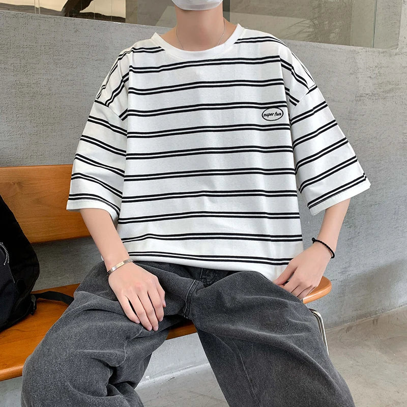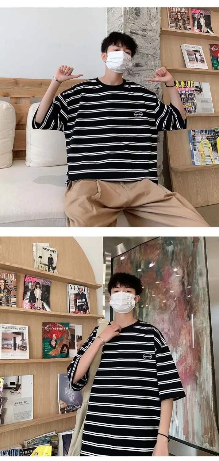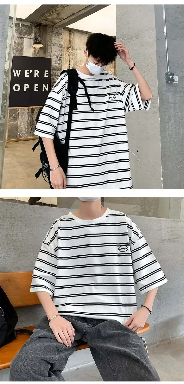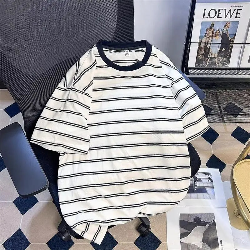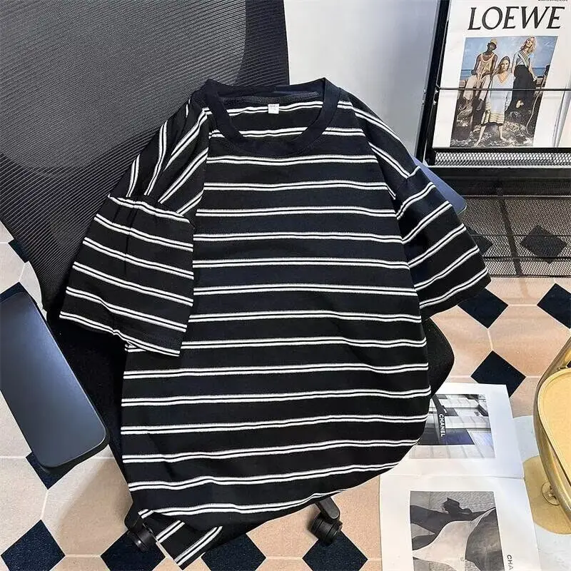AIDASE - Fashion O-Neck Short Sleeve Printed Striped T-Shirts Men's Clothing 2025 Summer New Loose Casual Tops Young Style Tee Shirt