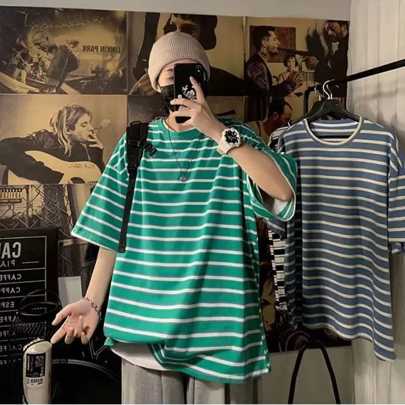 AIDASE - Fashion Printed Loose All-match Striped Tee Shirt Men's Clothing Summer New Oversized Casual Pullovers Half Sleeve T-Shirt