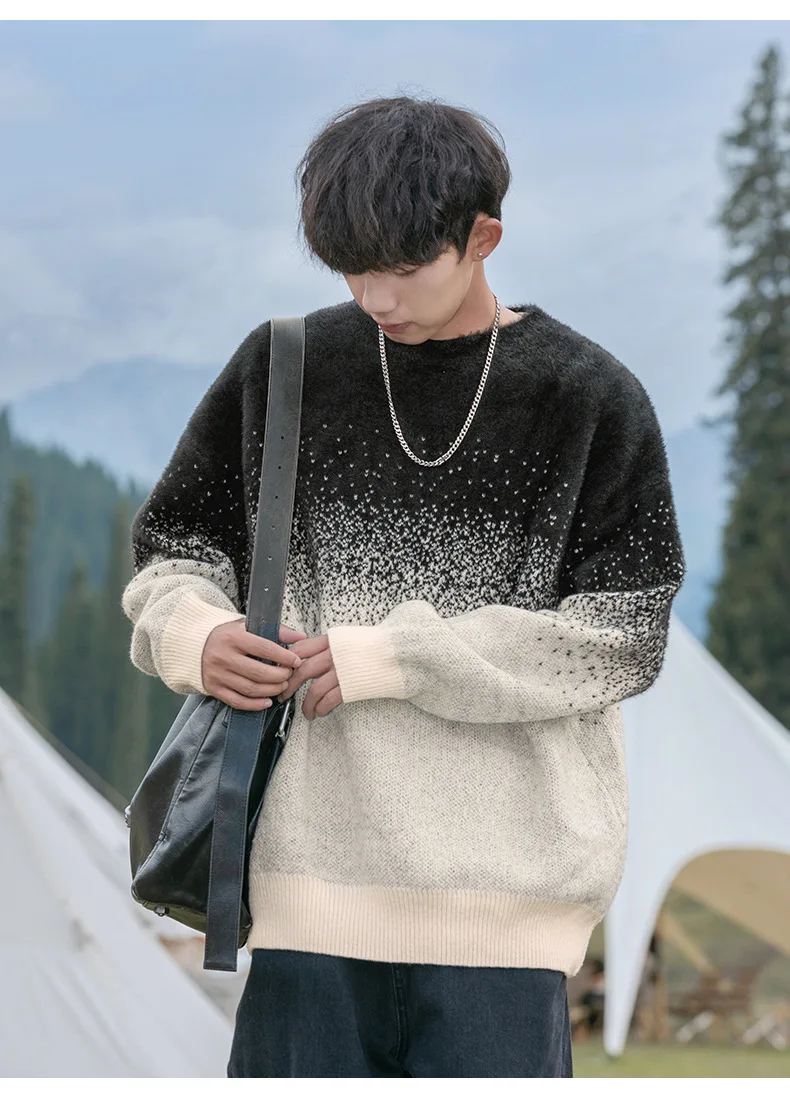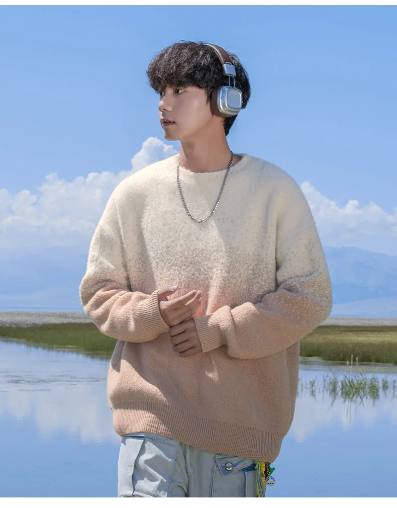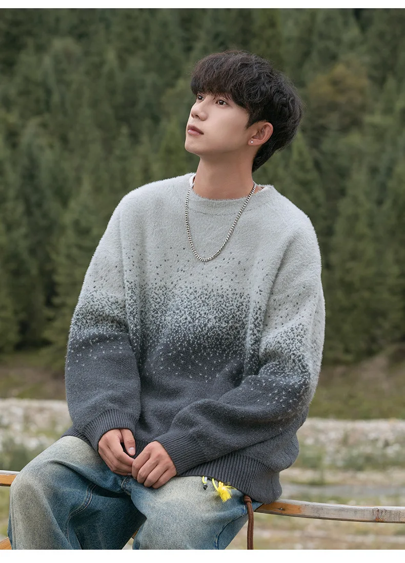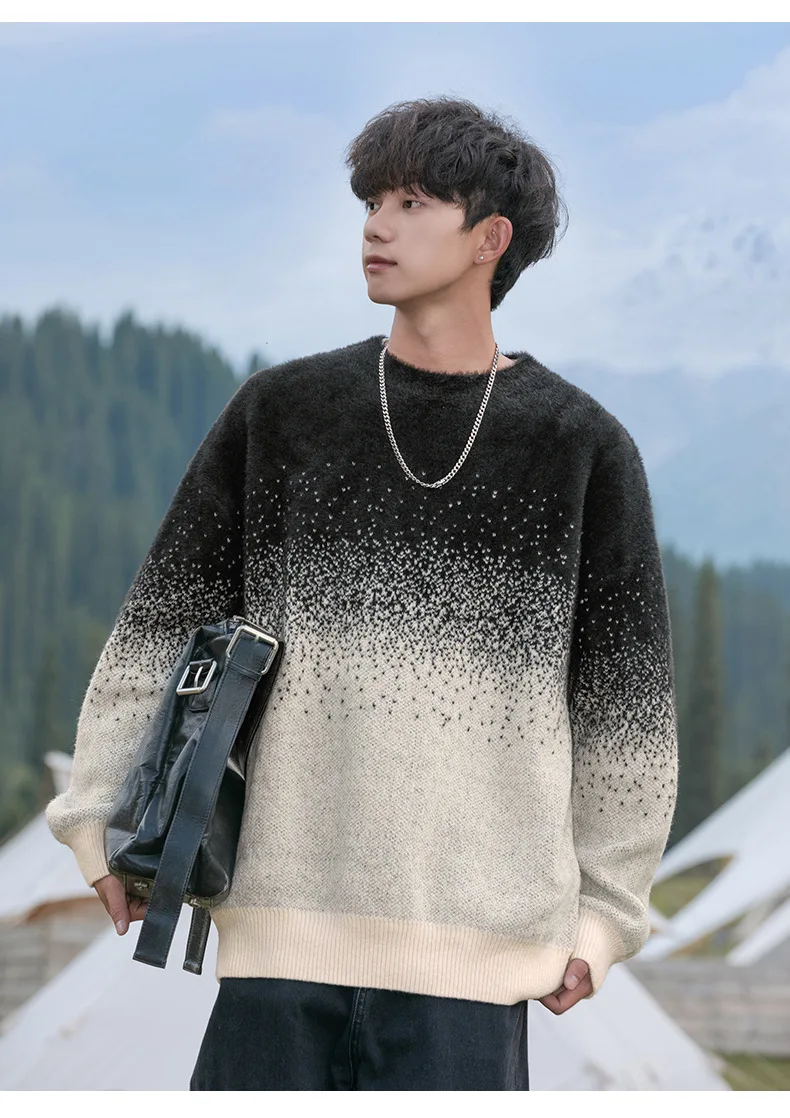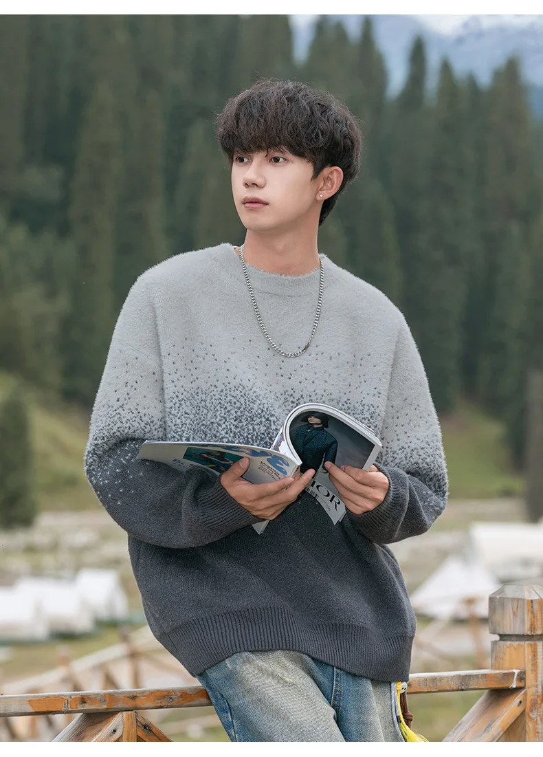 Aidase Faux Mink Plush Gradient Splicing Design Sweater Men's Autumn Winter Loose Lazy Wind Warm Couple Knit Sweater Keep Warm Velvet