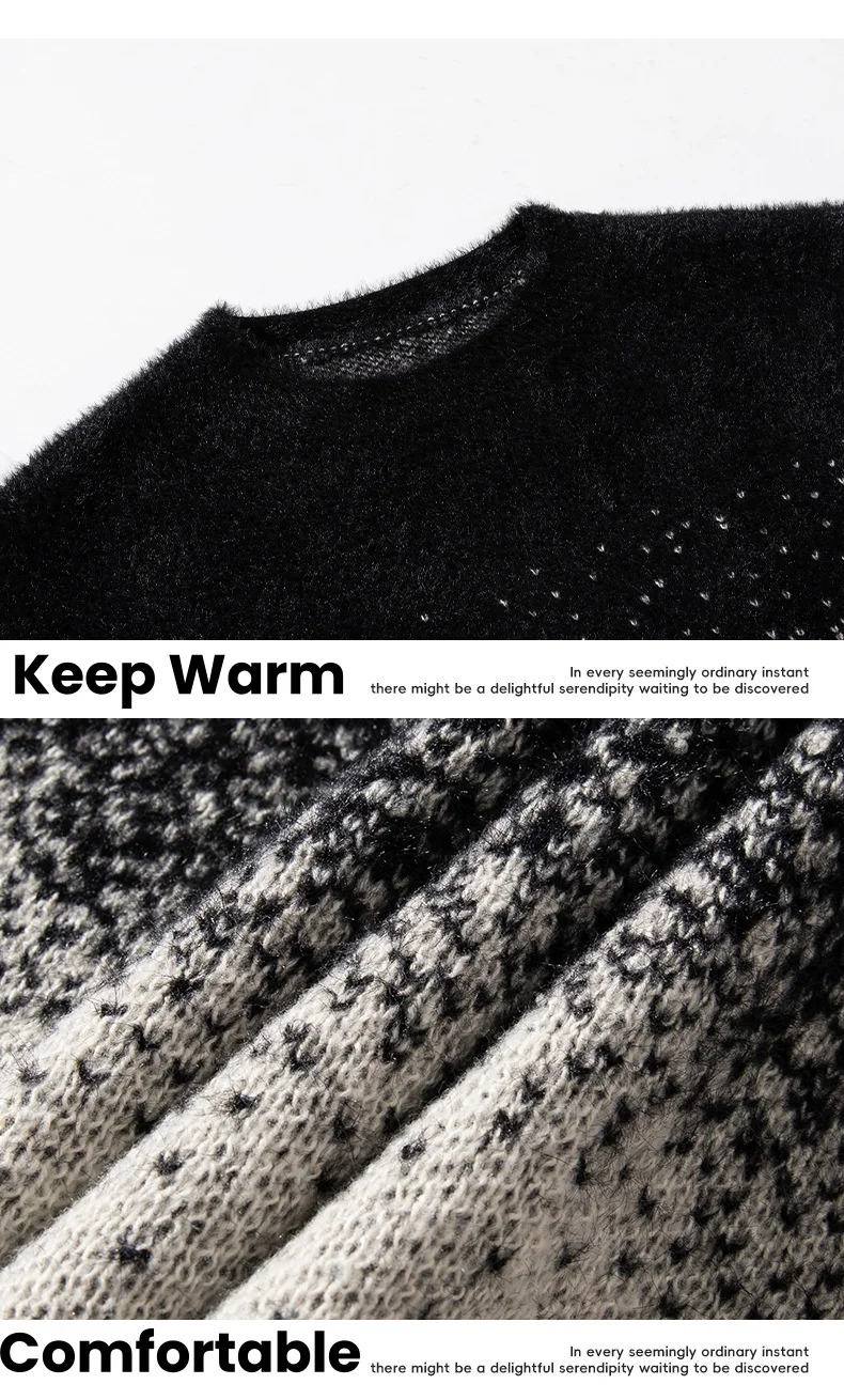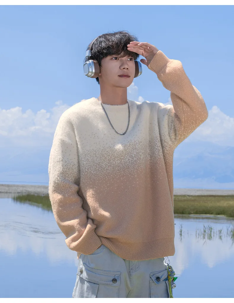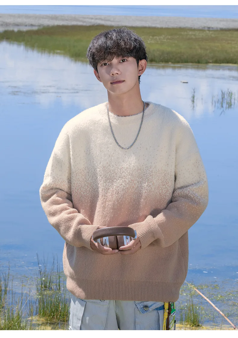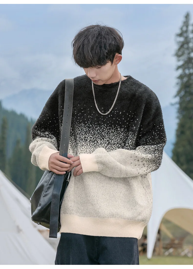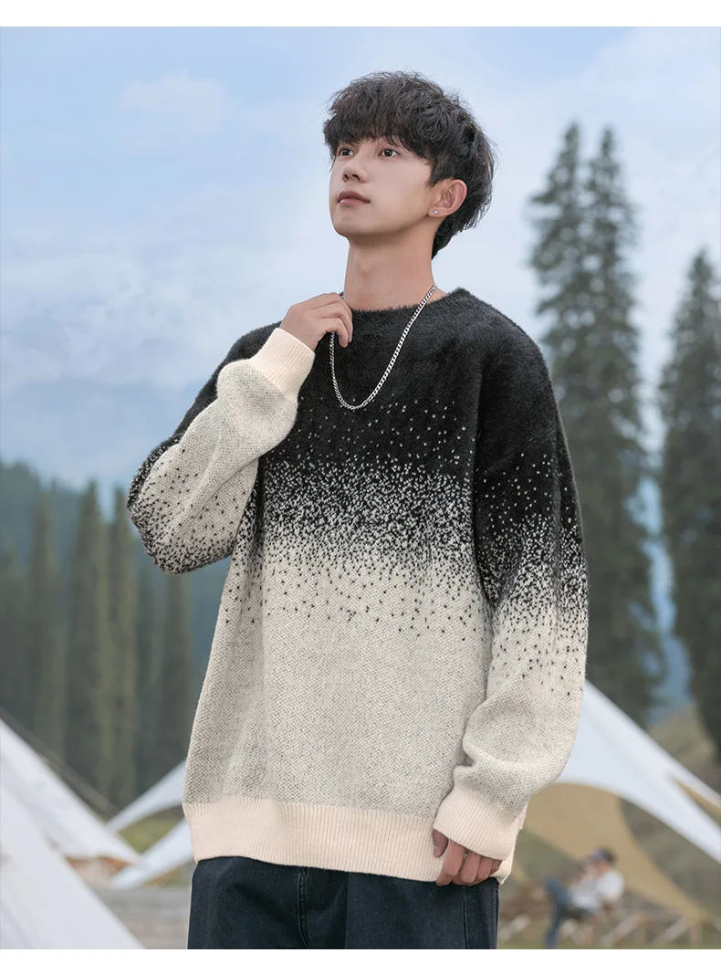 Aidase Faux Mink Plush Gradient Splicing Design Sweater Men's Autumn Winter Loose Lazy Wind Warm Couple Knit Sweater Keep Warm Velvet