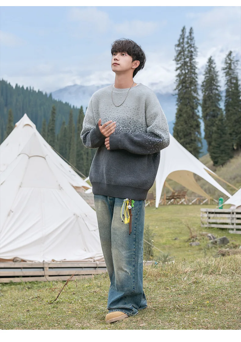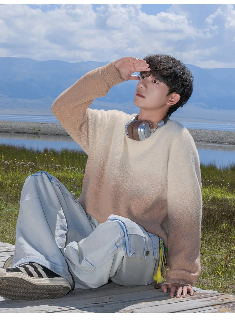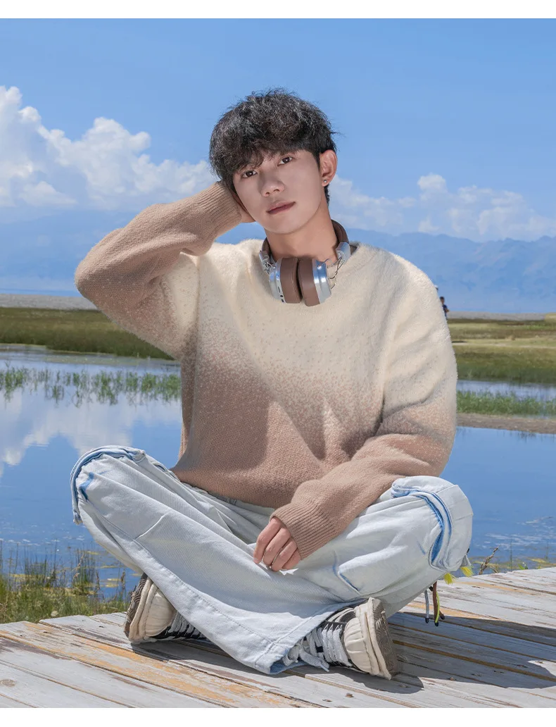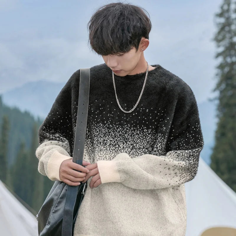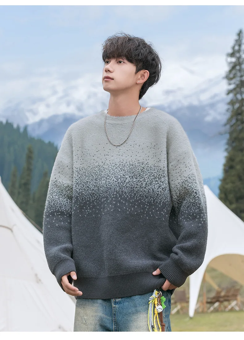 Aidase Faux Mink Plush Gradient Splicing Design Sweater Men's Autumn Winter Loose Lazy Wind Warm Couple Knit Sweater Keep Warm Velvet