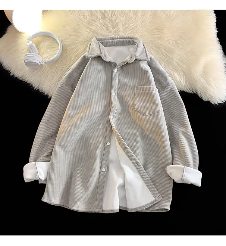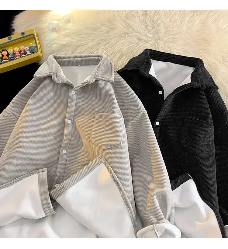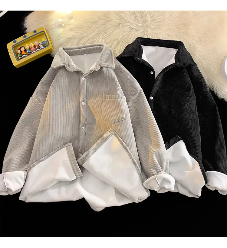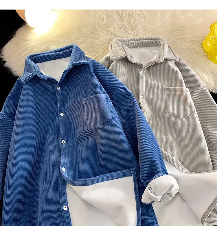 Aidase Fleece Corduroy 8XL Casual Men's Shirts Clothing Big Size Long Sleeve Shirt Man Social Mens Shirt Top Cool 2024 Autumn Winter