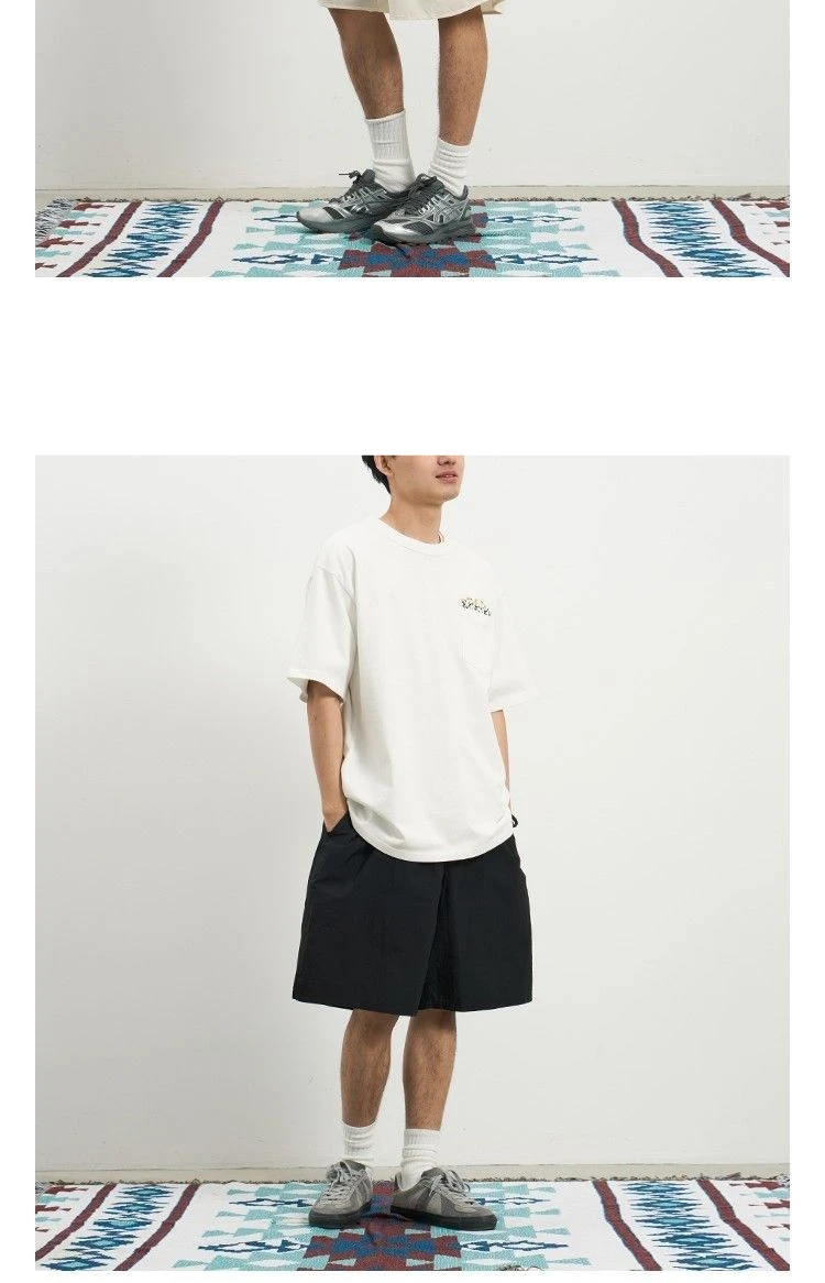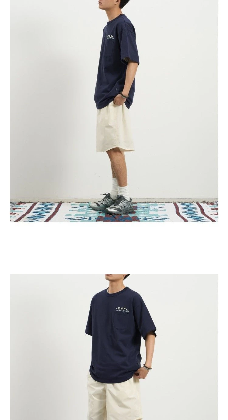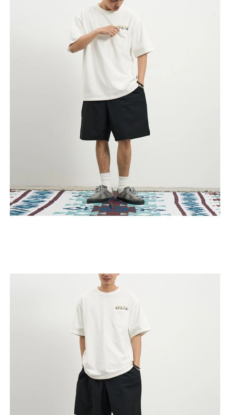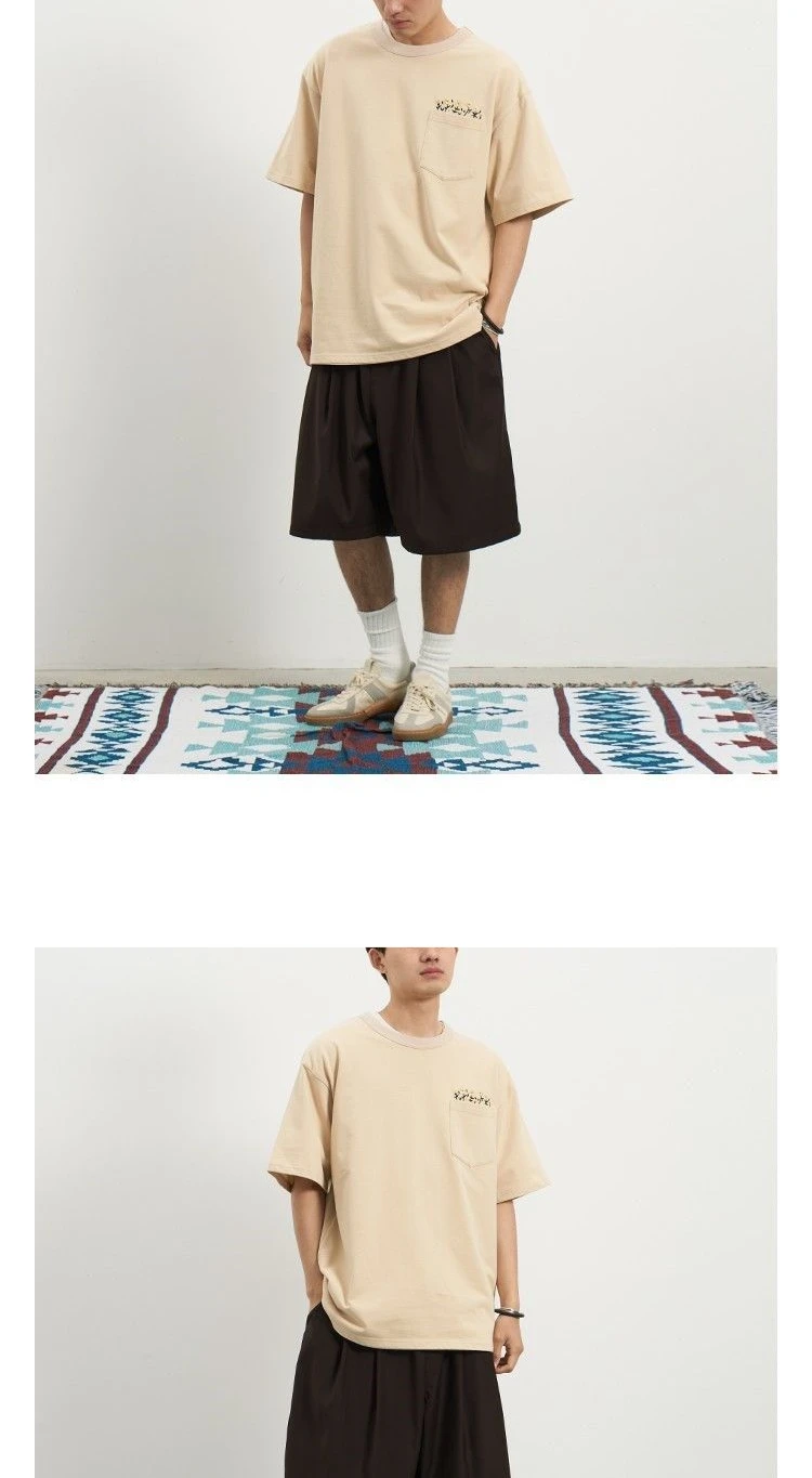Aidase Flower Embroidered Short Sleeve Cotton T-shirt High Quality Round Neck Pocket Solid T-shirt Men Japanese Streetwear Tee Top