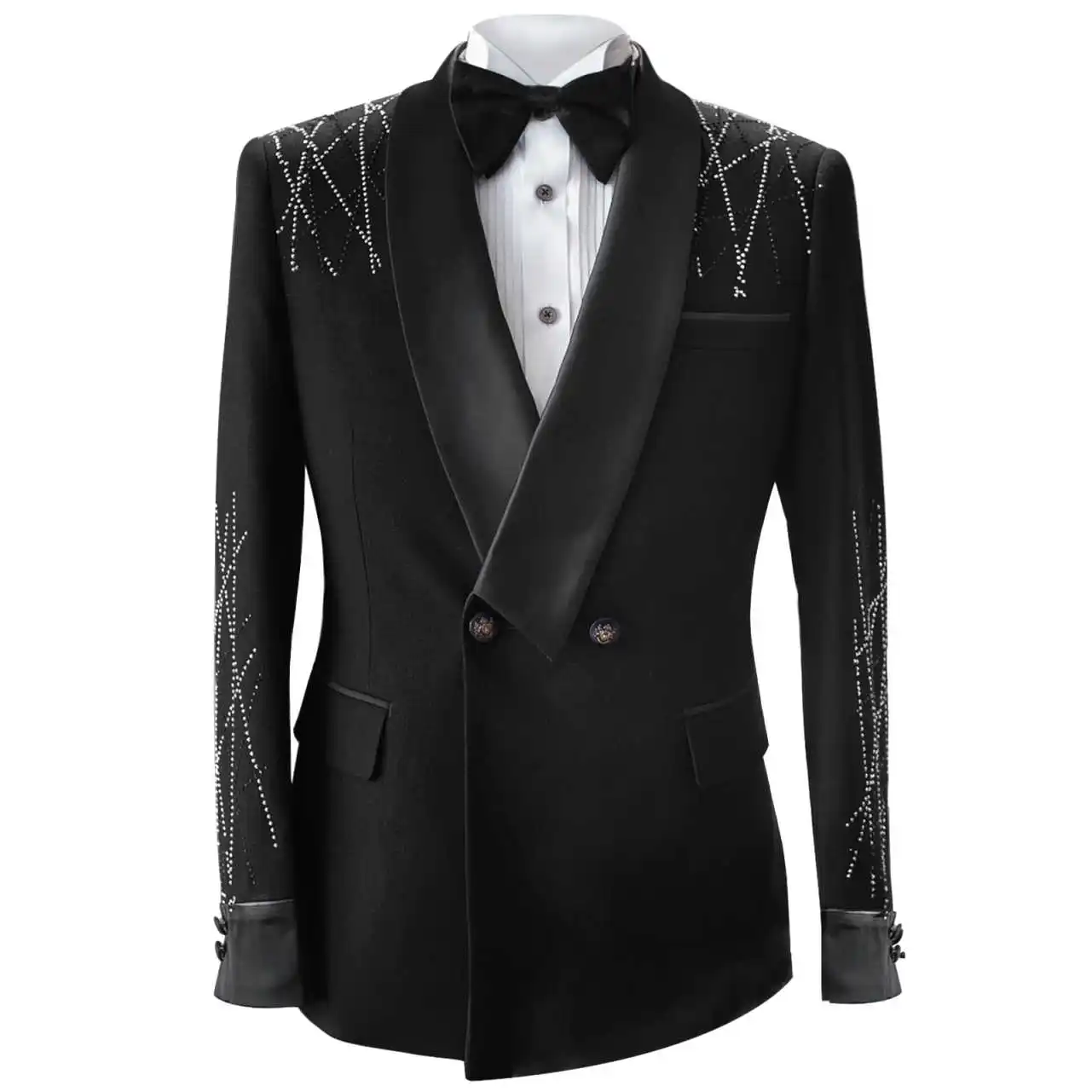 AIDASE - Formal Suits Men For Wedding Double Breasted Silk Shawl Lapel 2 Pieces Groom Tuxedos Tailored Beads Male Clothing